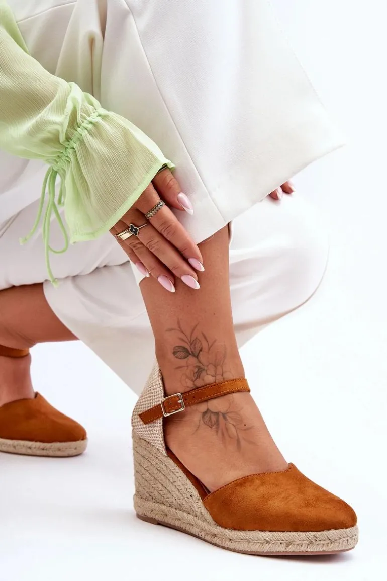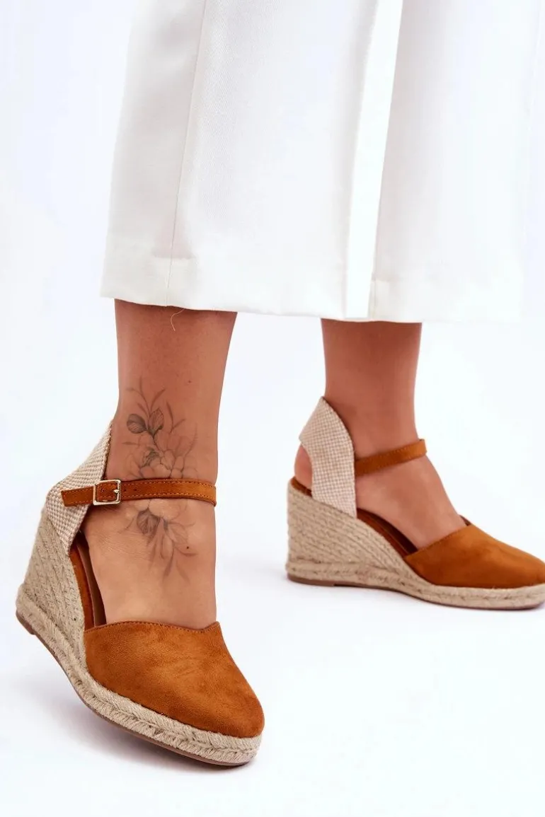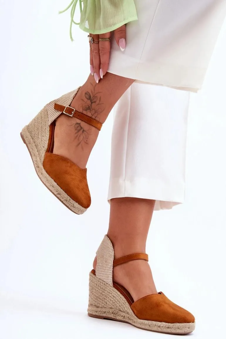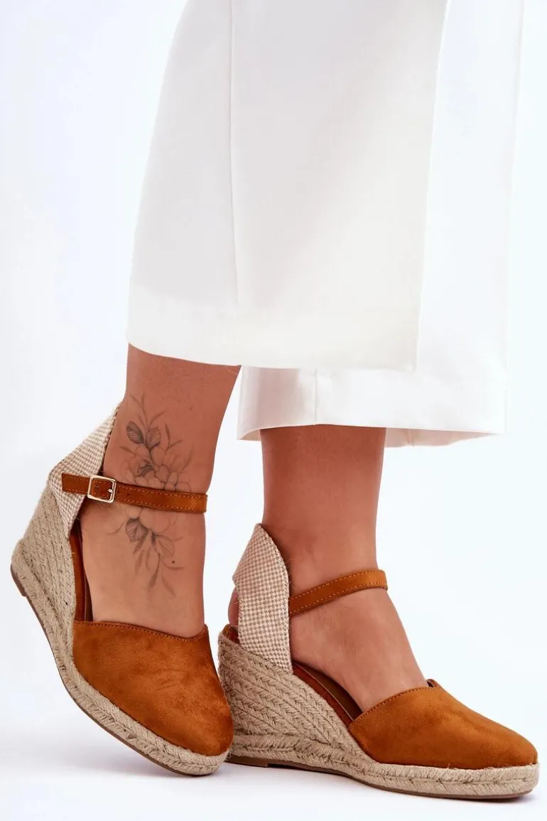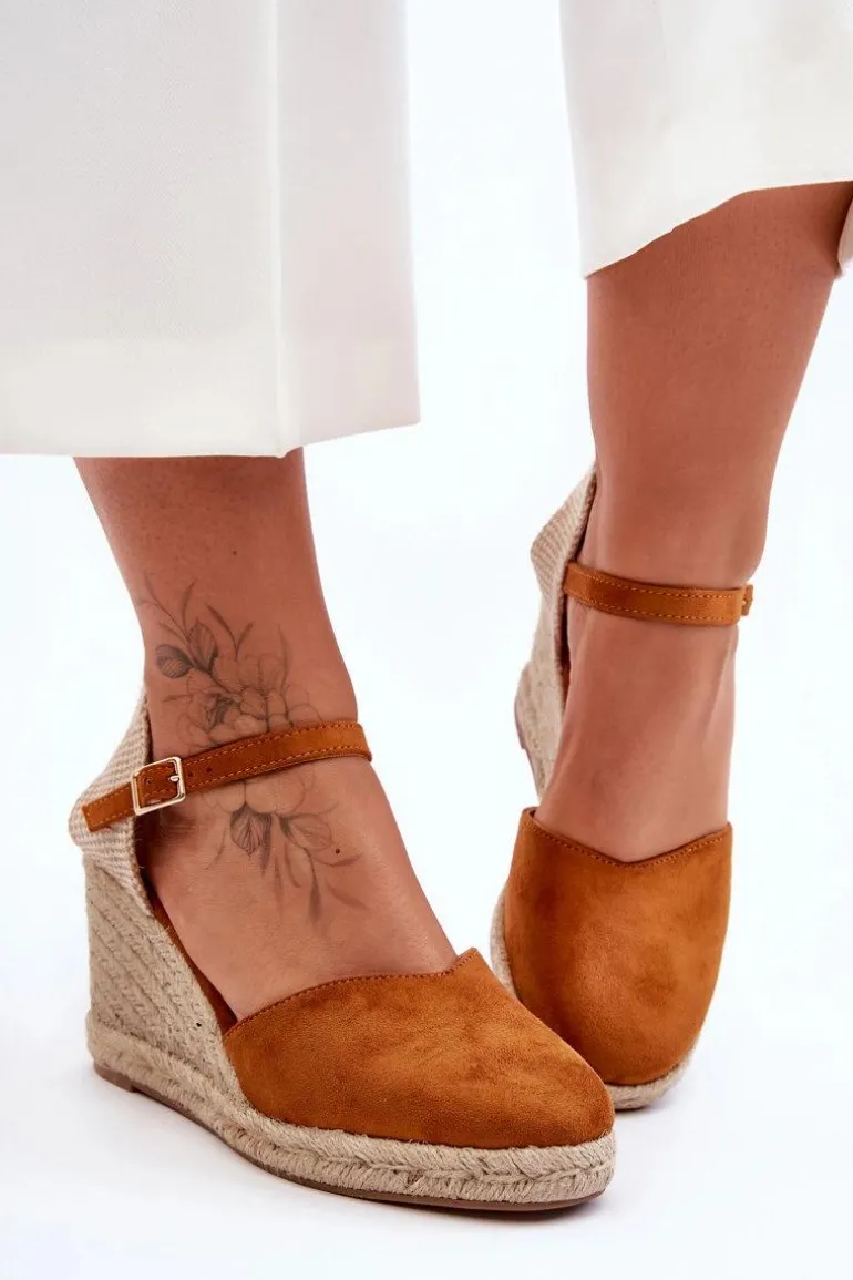 Zamszowe Sandały Na Koturnie Brązowe Selfoss
