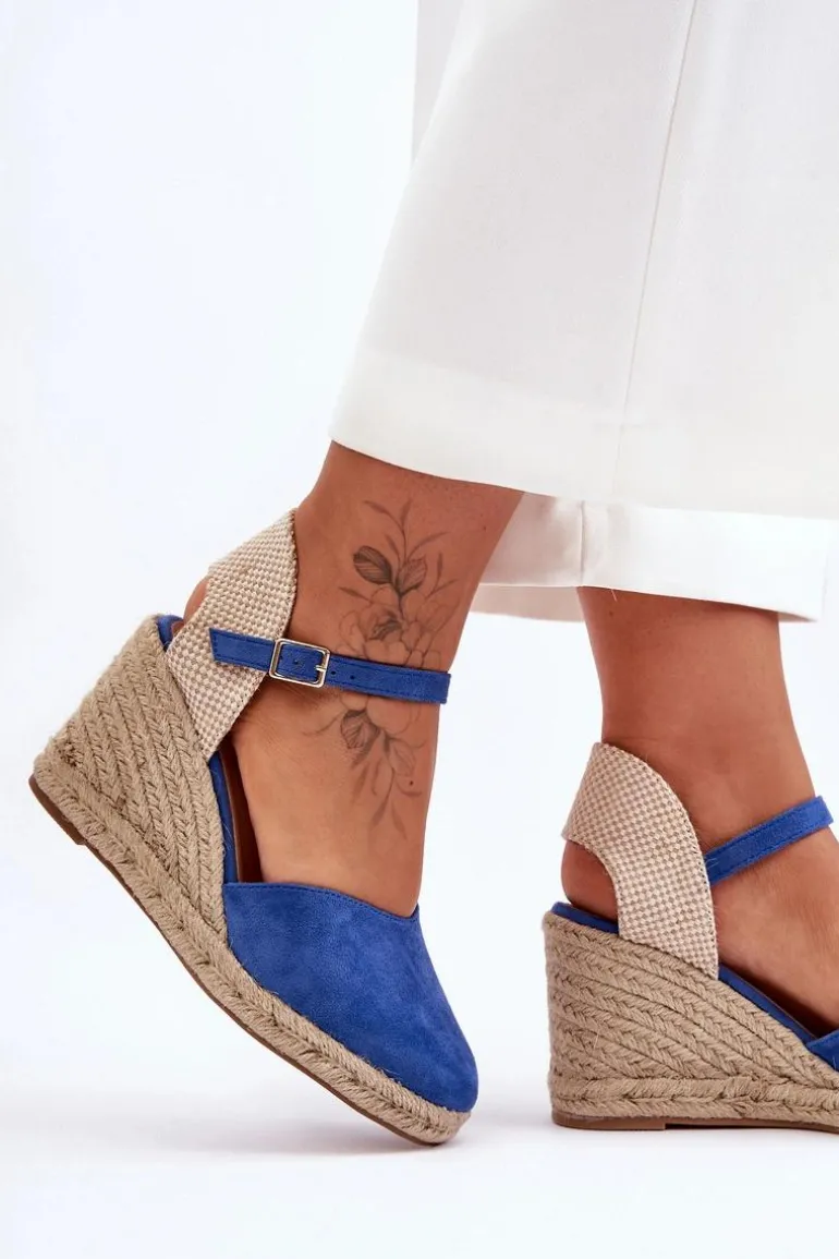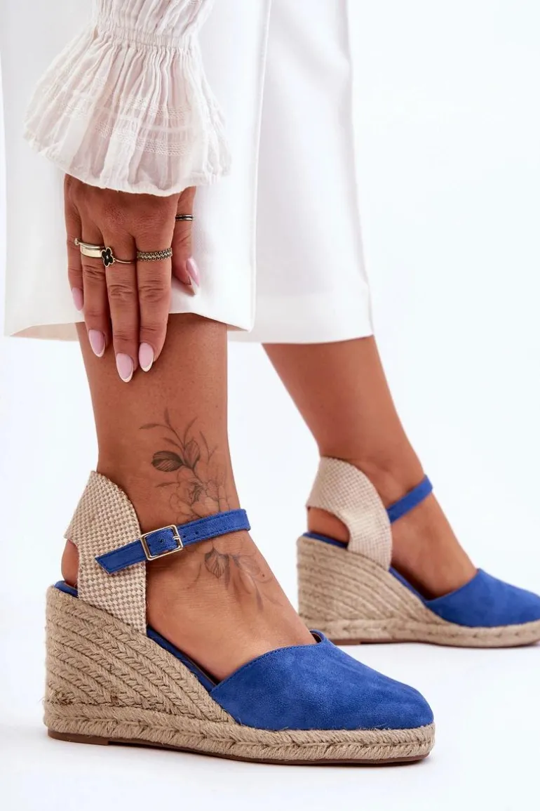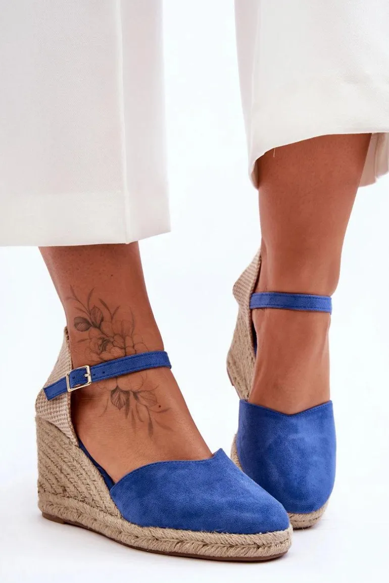 Zamszowe Sandały Na Koturnie Niebieskie Selfoss