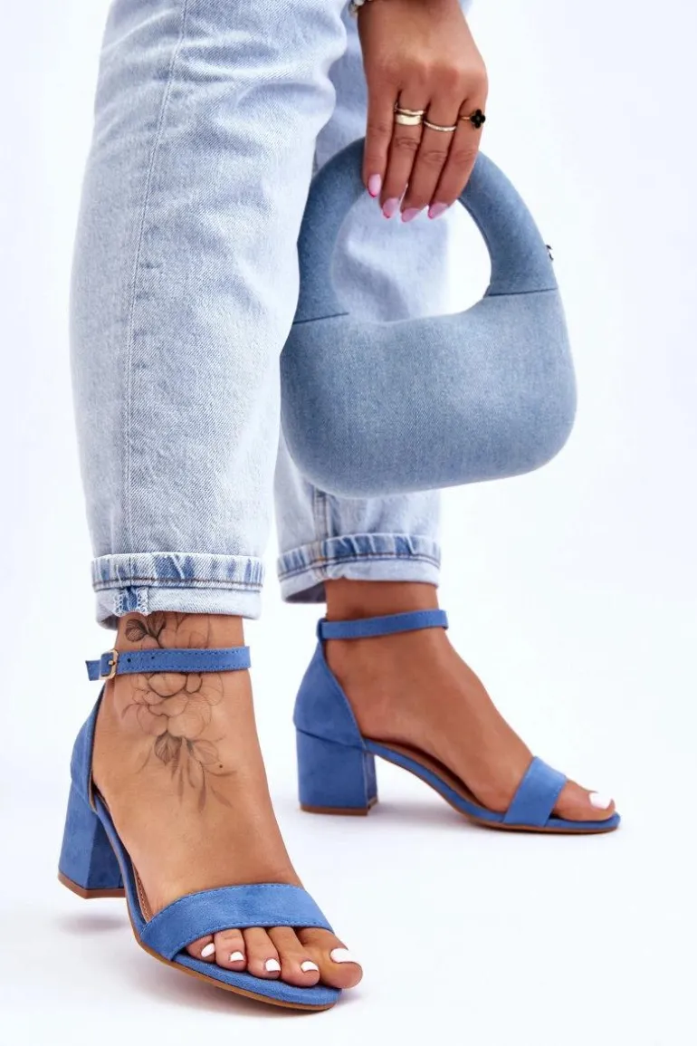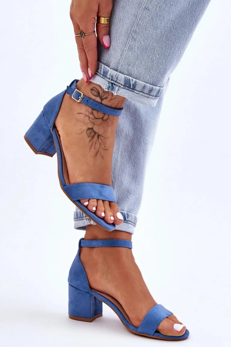 Wyjątkowe sandałki na niewysokim obcasie w postaci stabilnego słupka. Wykonane z przyjemnego w dotyku eko zamszu. Sandałki te posiadają usztywniany zapiętek. Wkładka wykonana z eko skóry zapewni komfortowe użytkowanie. Nosek odkryty, zaokrąglony. Zapinane wokół kostki na regulowany pasek ze sprzączką. Na pewno wykorzystasz je w wielu sytuacjach! Przy wyborze rozmiaru prosimy sugerować się tabelą rozmiarów.