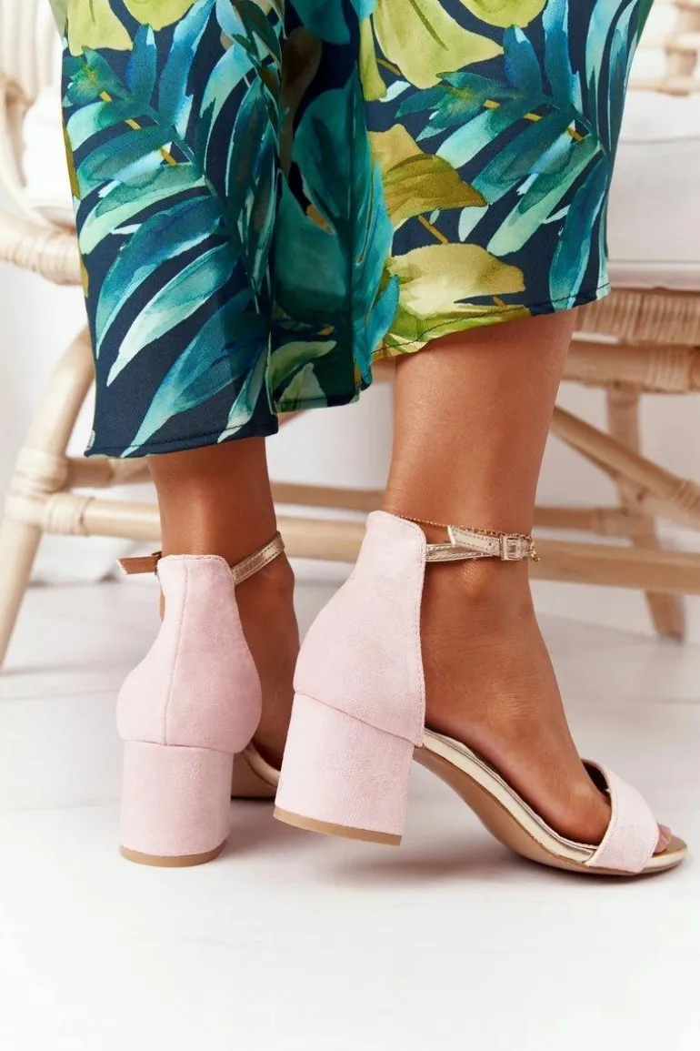 Zamszowe Sandały Na Obcasie Różowe Janet