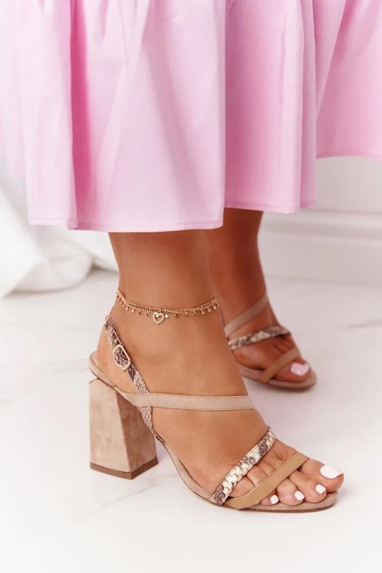 Wyjątkowe sandały na obcasie marki S.Barski. Buty wykonane są z eko zamszu z dbałością o detale. Miękka wkładka ze skóry naturalnej oraz antypoślizgowa podeszwa zadbają o Twoją wygodę! Przy wyborze rozmiaru prosimy kierować się tabelą rozmiarów.
