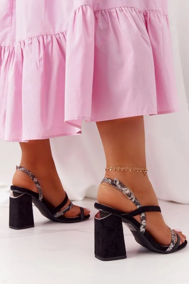 Wyjątkowe sandały na obcasie marki S.Barski. Buty wykonane są z eko zamszu z dbałością o detale. Miękka wkładka ze skóry naturalnej oraz antypoślizgowa podeszwa zadbają o Twoją wygodę! Przy wyborze rozmiaru prosimy kierować się tabelą rozmiarów.