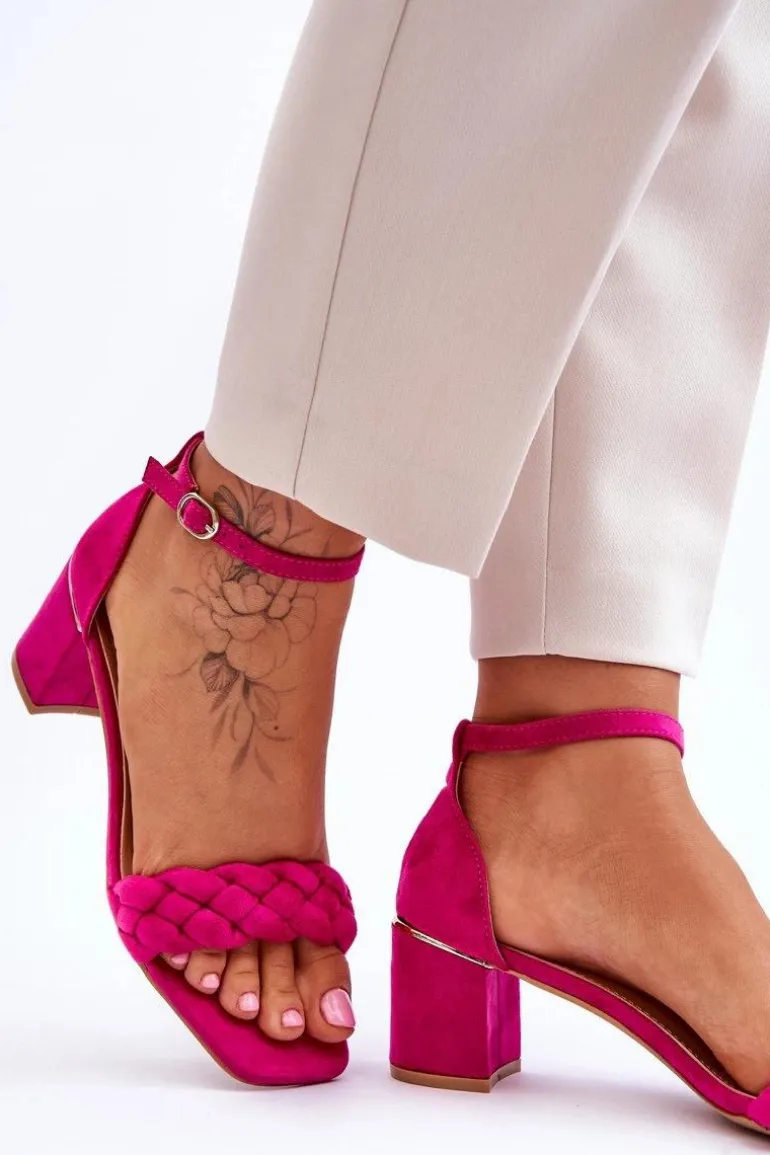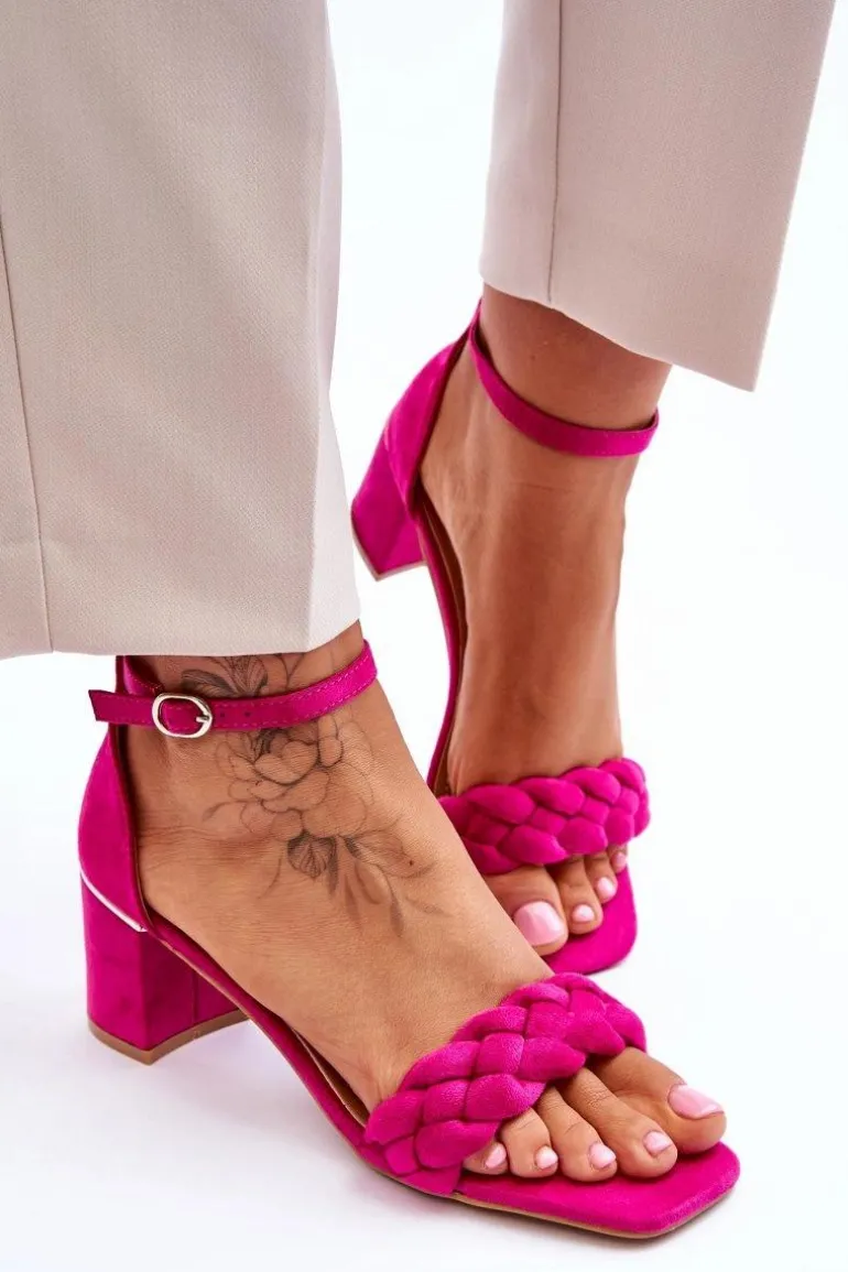 Zamszowe Sandały Na Obcasie Z Ozdobnym Warkocze Fuksja Azela