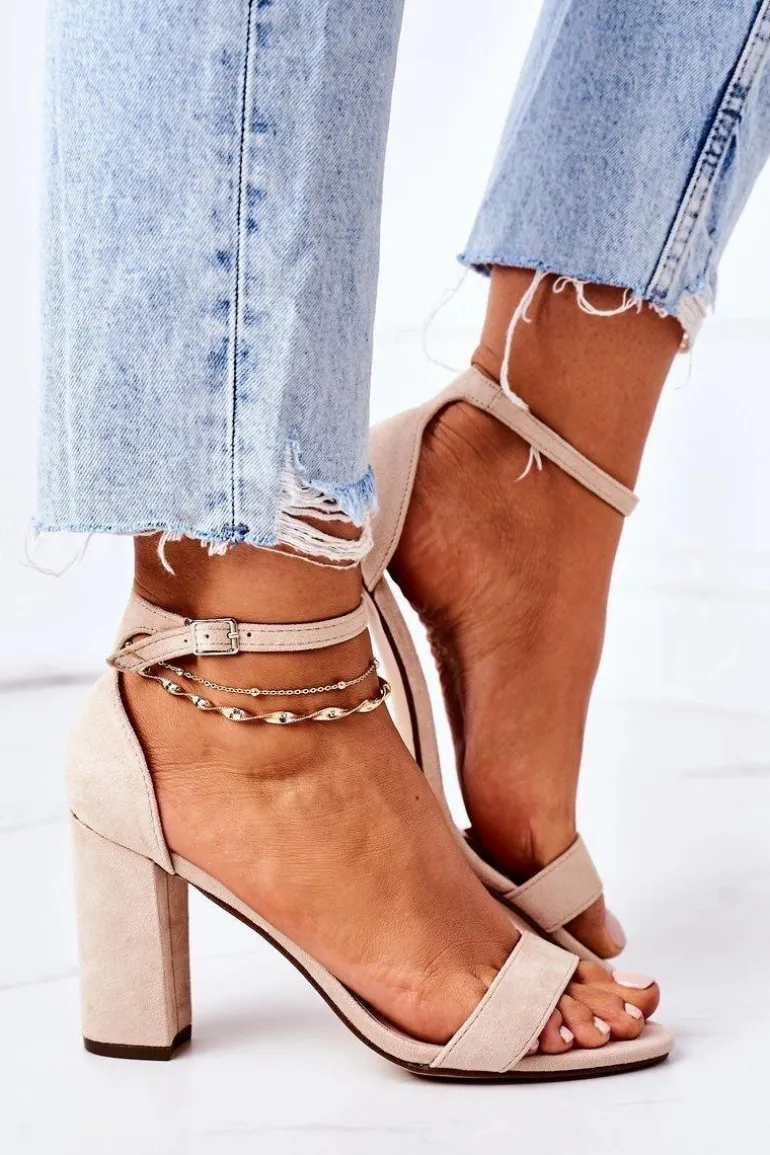 Eleganckie sandały na słupku wykonane z eko zamszu. Miękka wkładka z eko skóry oraz wygodny obcas zapewnią komfort. Przy wyborze rozmiaru prosimy sugerować się tabelą rozmiarów.