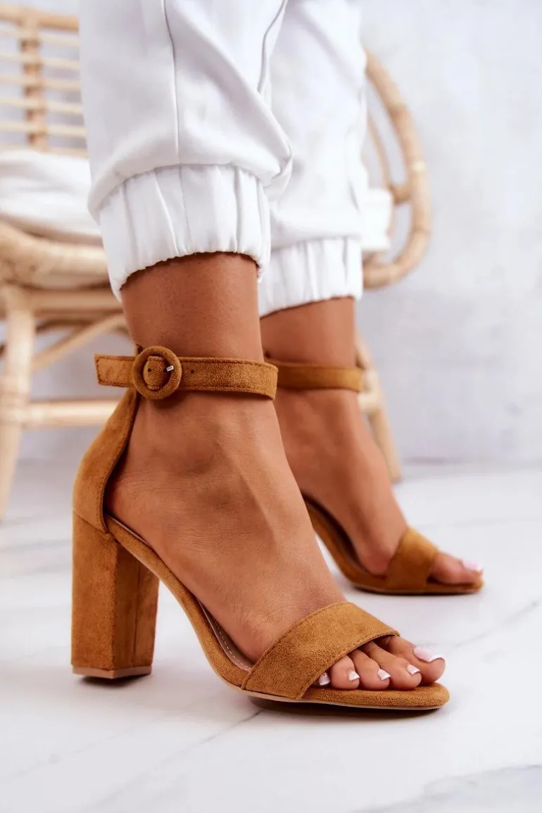 Klasyczne sandały na słupku wykonane z eko zamszu. O Twój komfort zadba miękka wkładka z eko skóry. Ponadczasowy fason, który musi znaleźć się w Twojej garderobie! Posiadają regulowany pasek zapinany na sprzączkę. Koniecznie sprawdź całą naszą kolekcję sandałów! Przy wyborze rozmiaru prosimy sugerować się tabelą rozmiarów.