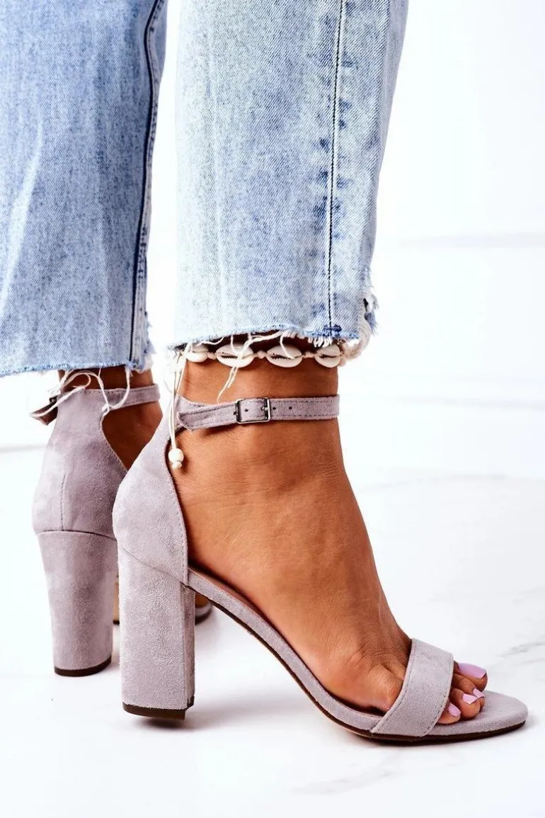 Eleganckie sandały na słupku wykonane z eko zamszu. Miękka wkładka z eko skóry oraz wygodny obcas zapewnią komfort. Przy wyborze rozmiaru prosimy sugerować się tabelą rozmiarów.