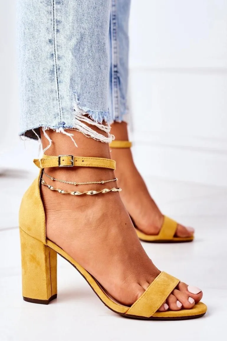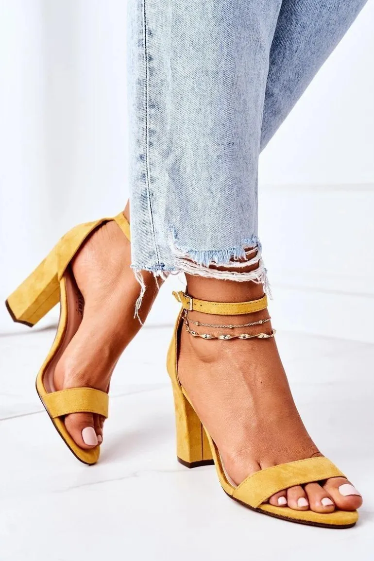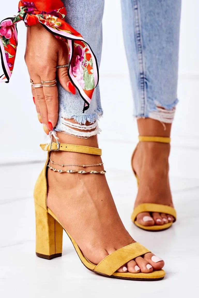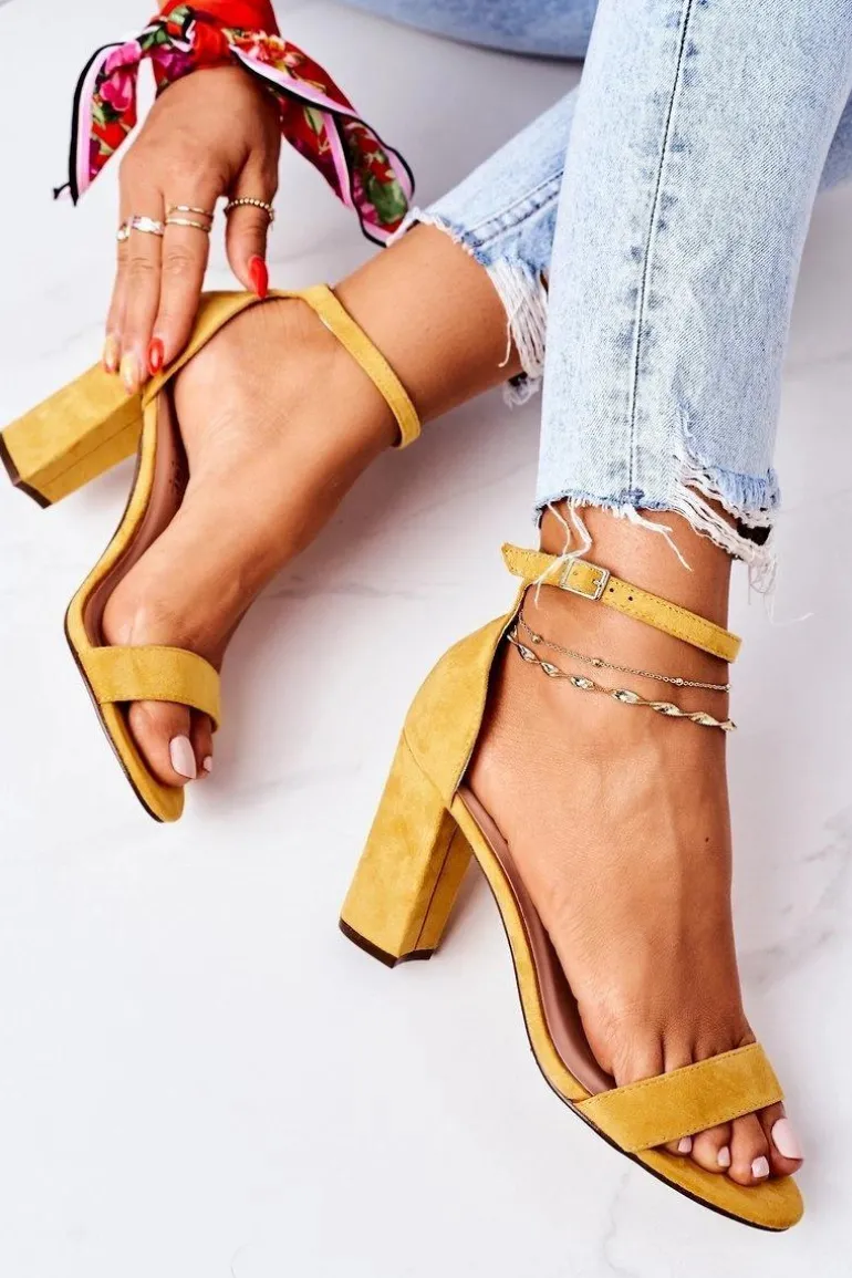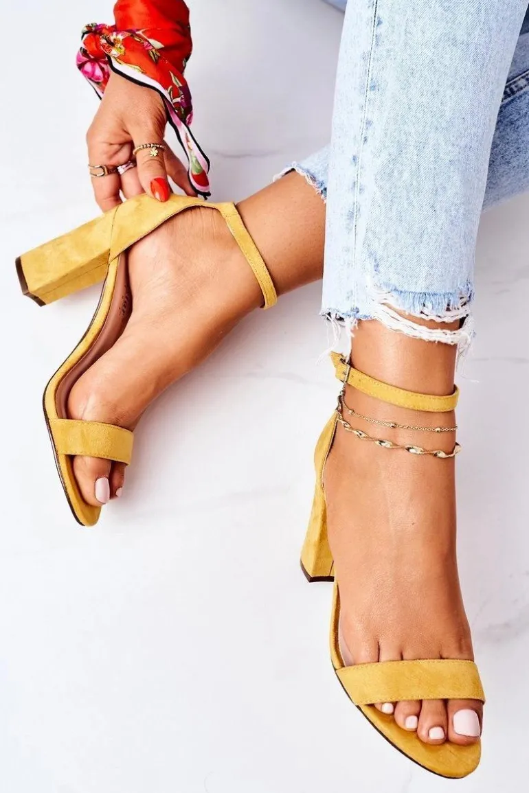 Eleganckie sandały na słupku wykonane z eko zamszu. Miękka wkładka z eko skóry oraz wygodny obcas zapewnią komfort. Przy wyborze rozmiaru prosimy sugerować się tabelą rozmiarów.