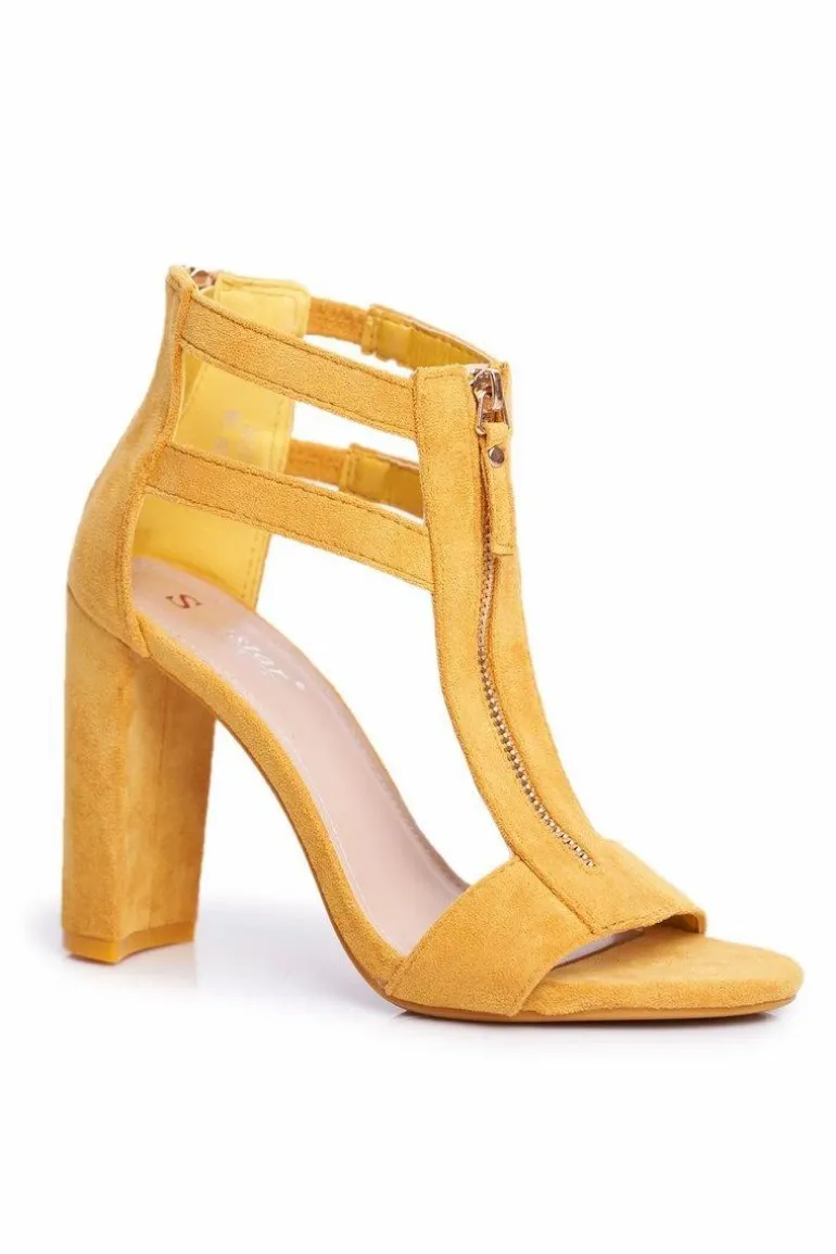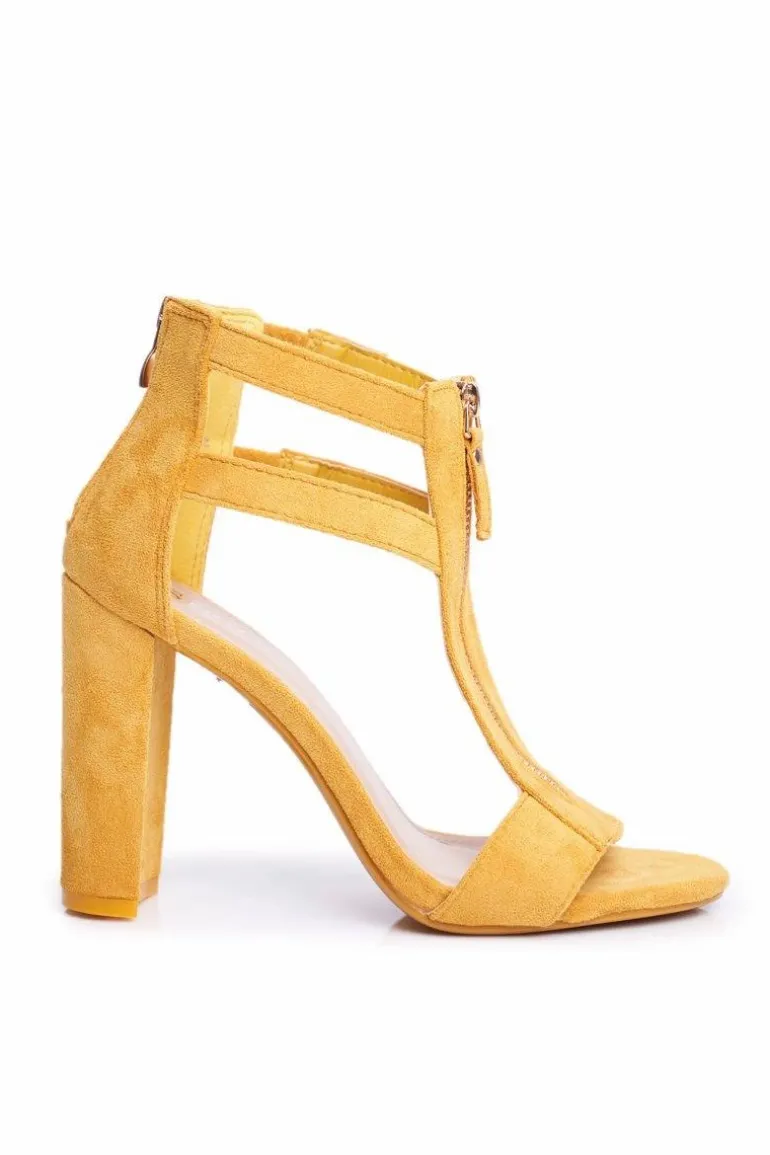 Zamszowe Sandały Na Słupku Żółte Folly