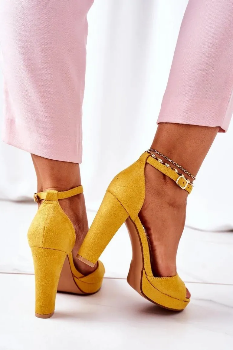 Eleganckie sandały na słupku wykonane z eko zamszu. Miękka wkładka z eko skóry oraz wygodny obcas zapewnią komfort. Przy wyborze rozmiaru prosimy sugerować się tabelą rozmiarów.