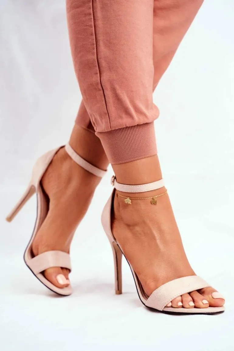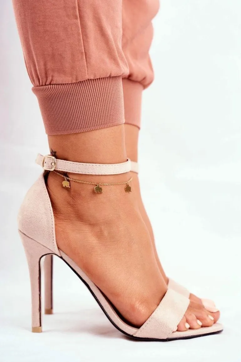 Klasyczne sandały na szpilce wykonane z eko zamszu. Przy wyborze rozmiaru prosimy sugerować się tabelą rozmiarów.