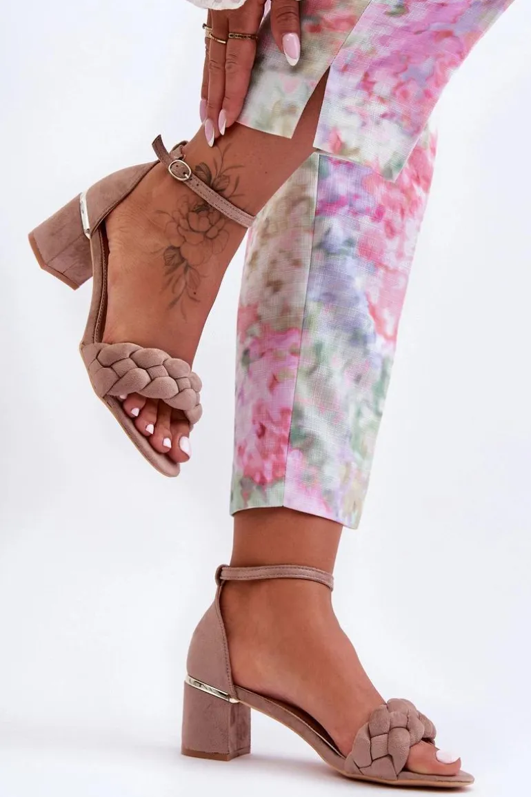 Zamszowe Sandały Z Warkoczem Ciemnobeżowe Essenza