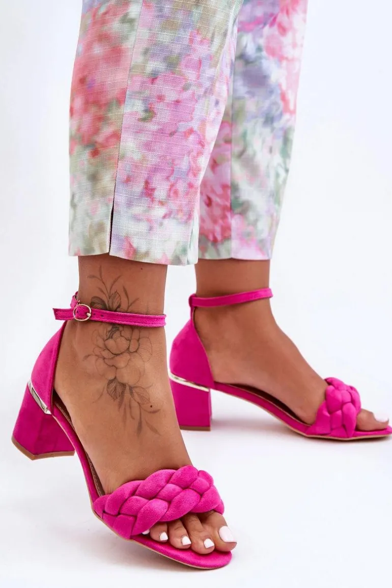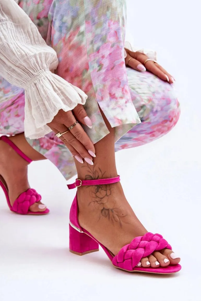 Zamszowe Sandały Z Warkoczem Fuksja Essenza