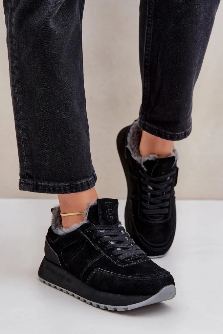 Damskie sneakersy od Big Star to idealne połączenie stylu i funkcjonalności. Wykonane z naturalnego zamszu. Ocieplane miękkim futerkiem, zapewniają ciepło podczas chłodniejszych dni. Z tyłu błyszczący element nadaje im wyjątkowego charakteru. Model sznurowany, wyposażony w innowacyjną wkładkę Hi-Poly System, która jest oddychająca, absorbuje wstrząsy oraz charakteryzuje się wysoką odpornością na ścieranie i odkształcenia. To wygodne i modne obuwie, które świetnie sprawdzi się na co dzień. Przy wyborze rozmiaru prosimy sugerować się tabelą rozmiarów.