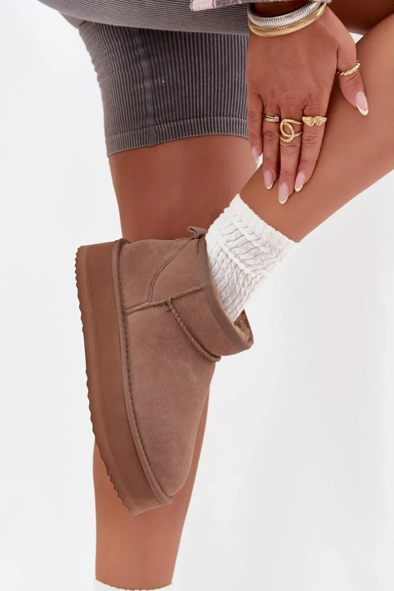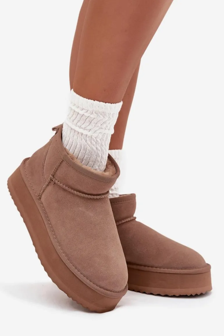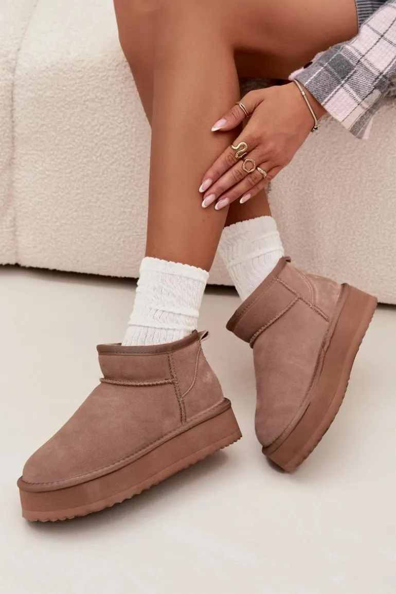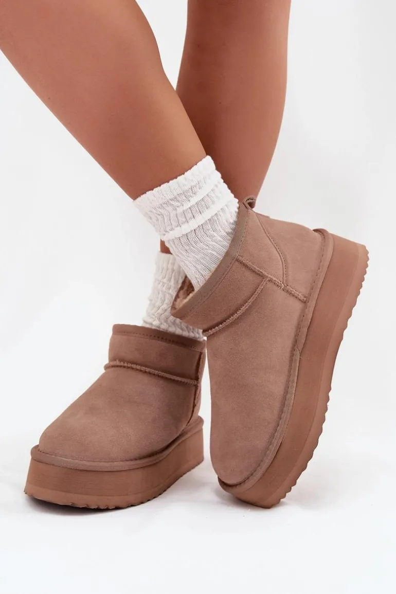 Zamszowe Śniegowce Damskie Na Platformie Vinceza 97962 Beżowe