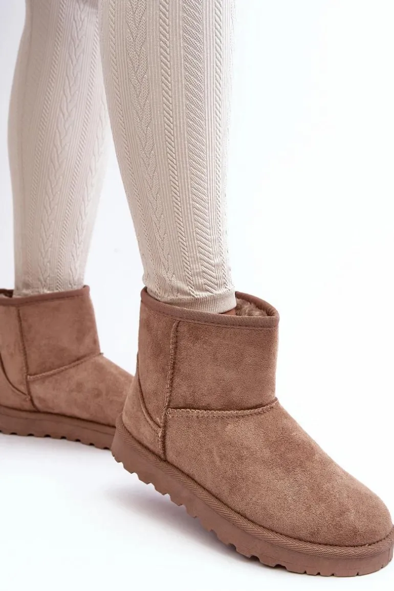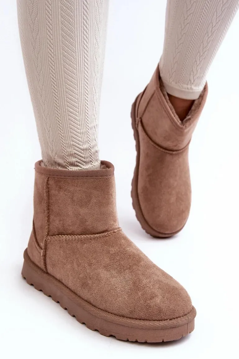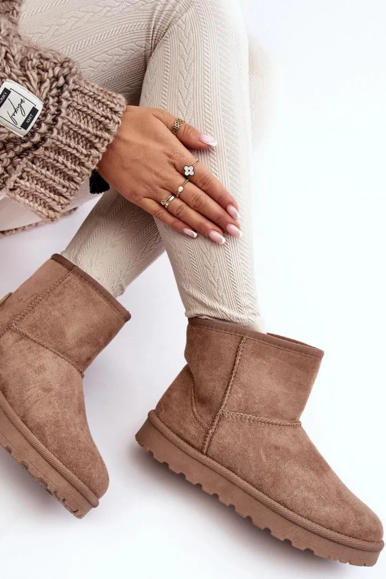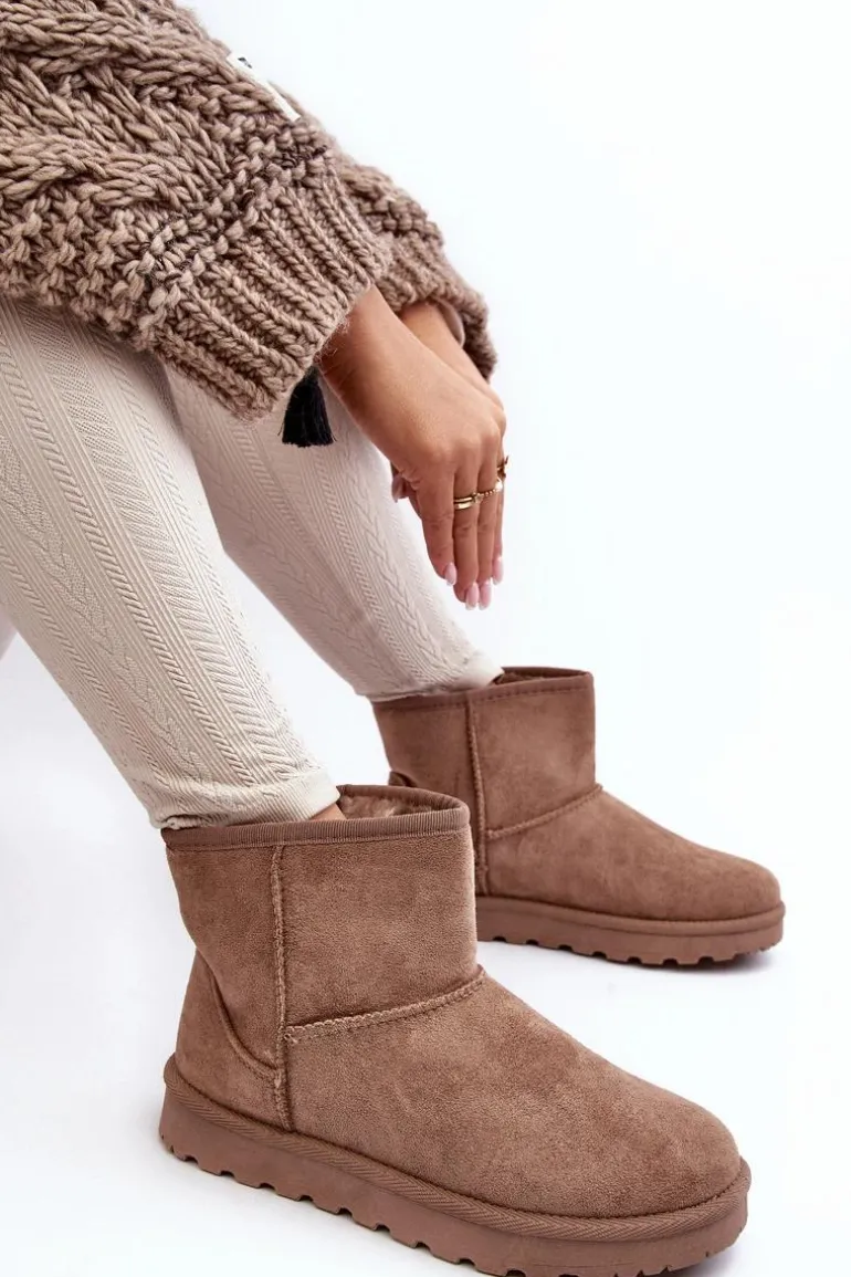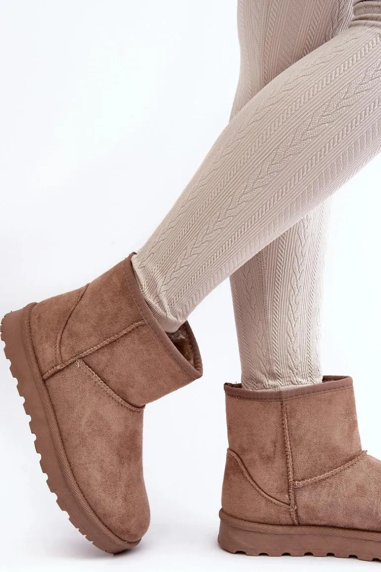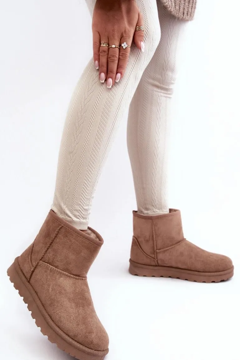Zamszowe Śniegowce Damskie Ocieplane Beżowe Nanga