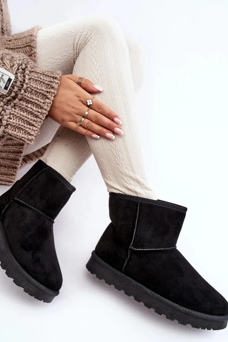 Zamszowe Śniegowce Damskie Ocieplane Czarne Nanga