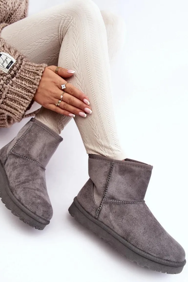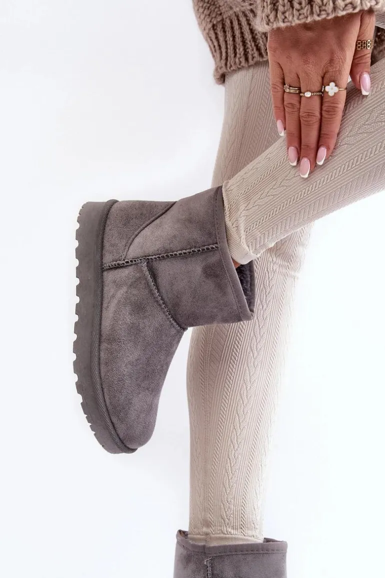 Damskie śniegowce wykonane z eko zamszu. Osadzone na podeszwie z gumowego tworzywa. Cholewka za kostkę. Idealnie sprawdzą się podczas mroźnych dni. Środek ocieplony futerkiem. Ten klasyczny model dopasujesz do wielu stylizacji. Przy wyborze rozmiaru prosimy sugerować się tabelą rozmiarów.