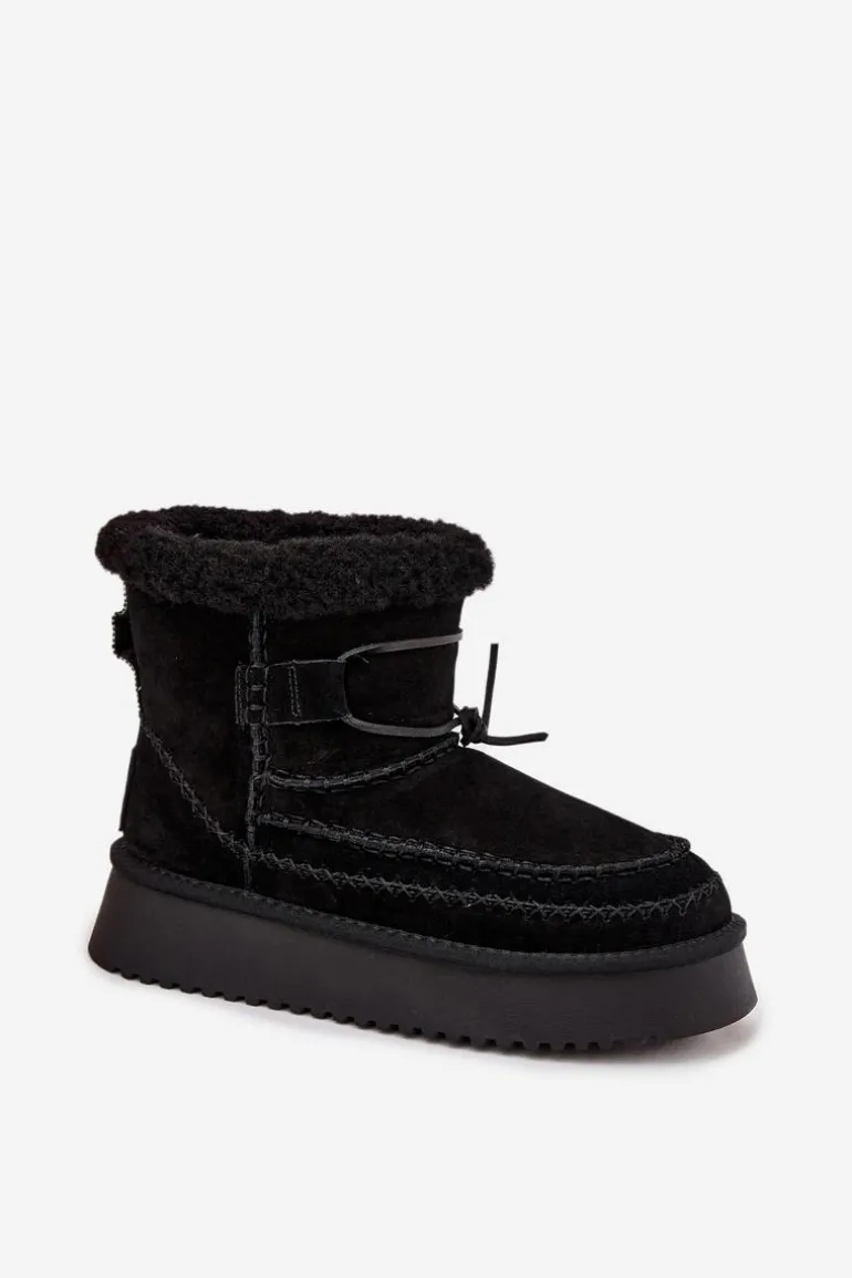 Śniegowce damskie od marki Big Star. Wykonane z wysokiej jakości naturalnego zamszu, prezentują trwały i elegancki wygląd, a stabilna platforma zapewnia pewny krok oraz dodatkową izolację od zimnego podłoża. Cholewka ozdobiona przeszyciami nadaje modowego charakteru, wyróżniając je w codziennych stylizacjach. Wsuwany fason ułatwia szybkie zakładanie, a wnętrze ocieplane kożuszkiem gwarantuje komfort i ciepło nawet w najchłodniejsze dni. Te śniegowce sprawdzą się zarówno podczas miejskich spacerów, jak i weekendowych wyjazdów w zimowe dni. Przy wyborze rozmiaru prosimy sugerować się tabelą rozmiarów.