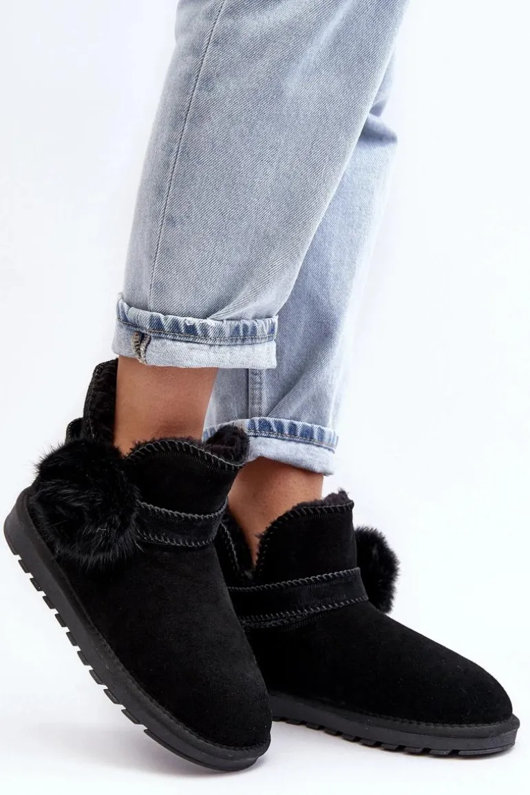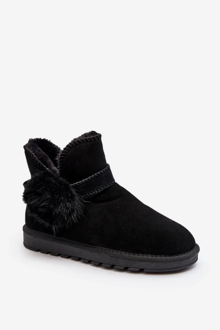 Śniegowce damskie wykonane z naturalnego zamszu. Cholewka z wycięciami ozdobiona ściąganym paskiem. Środek ocieplony grubym futerkiem. Cholewka do kostki. Model ten posiada platformę z gumowego tworzywa, która świetnie odizoluje od zimnego podłoża. Koniecznie powinnaś je mieć! Przy wyborze rozmiaru prosimy sugerować się tabelą rozmiarów.