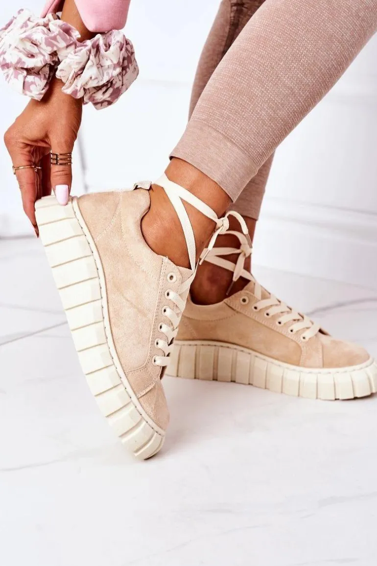 Modne tenisówki na dużej, gumowej platformie. Buty dobrze dopasowują się do kształtu stopy, posiadają cholewkę z eko zamszu oraz antypoślizgową podeszwę. Koniecznie sprawdź całą naszą kolekcję tenisówek! Przy wyborze rozmiaru prosimy sugerować się tabelą rozmiarów.