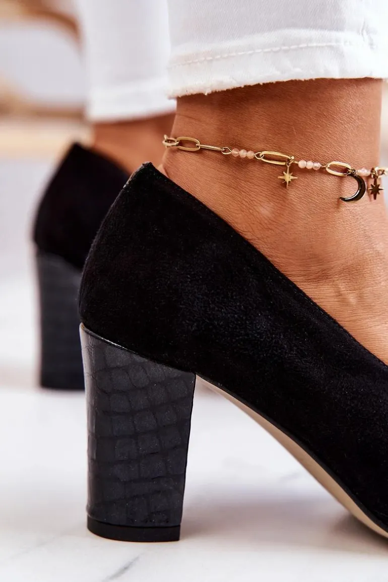 Piękne czółenka są wykonane z naturalnej skóry. Modny wzór na przodzie oraz obcasie. Miękka wkładka z naturalnej skóry daje poczucie komfortu na każdym kroku. Buty wykonane z dbałością o szczegóły. Nie możesz przejść obojętnie obok tego modelu! Nie zwlekaj i kup już dziś! Przy wyborze rozmiaru prosimy sugerować się tabelą rozmiarów, która dostępna jest po najechaniu bądź kliknięciu w dany rozmiar.