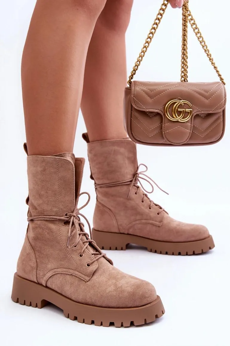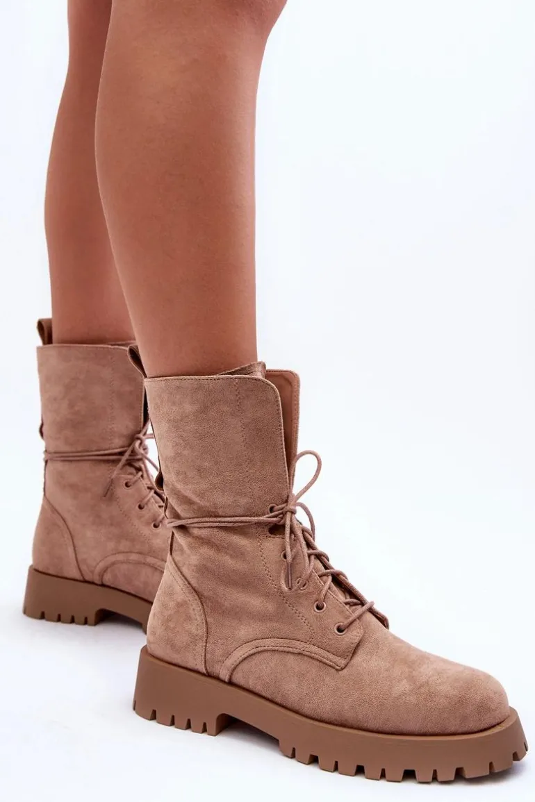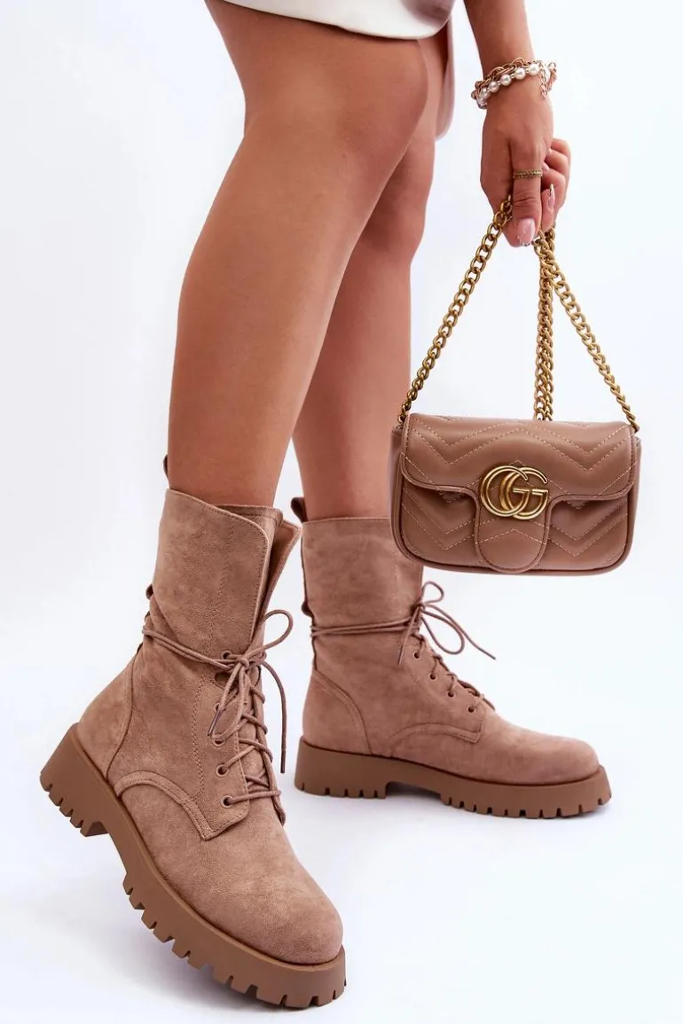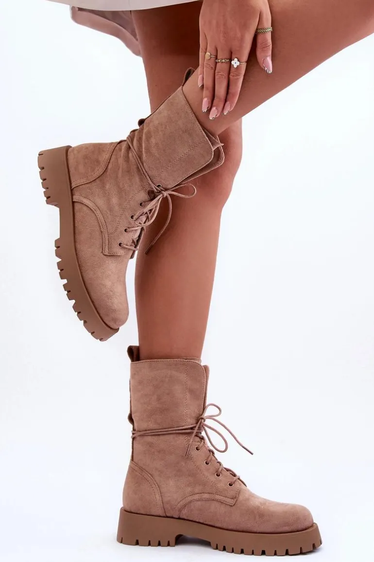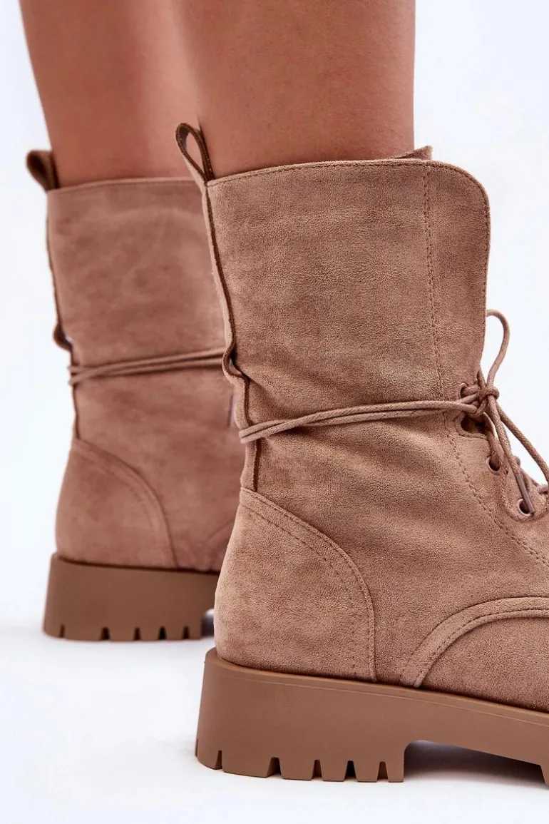 Modne workery damskie zostały wykonane z miłego w dotyku eko zamszu. Osadzone na płaskim obcasie oraz platformie. Miękka materiałowa wkładka zapewni komfortowe użytkowanie obuwia. Botki posiadają usztywniany zapiętek. Idealny model do jesiennych stylizacji! Przy wyborze rozmiaru prosimy sugerować się tabelą rozmiarów.