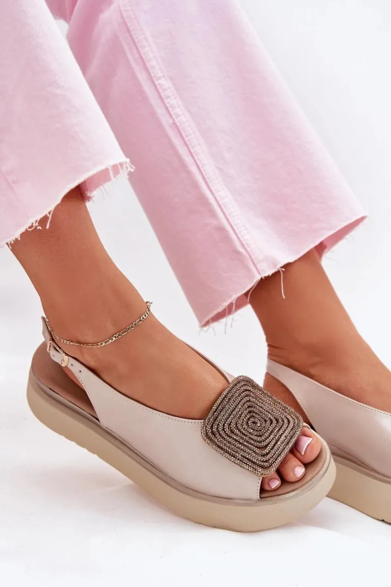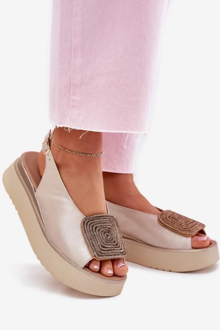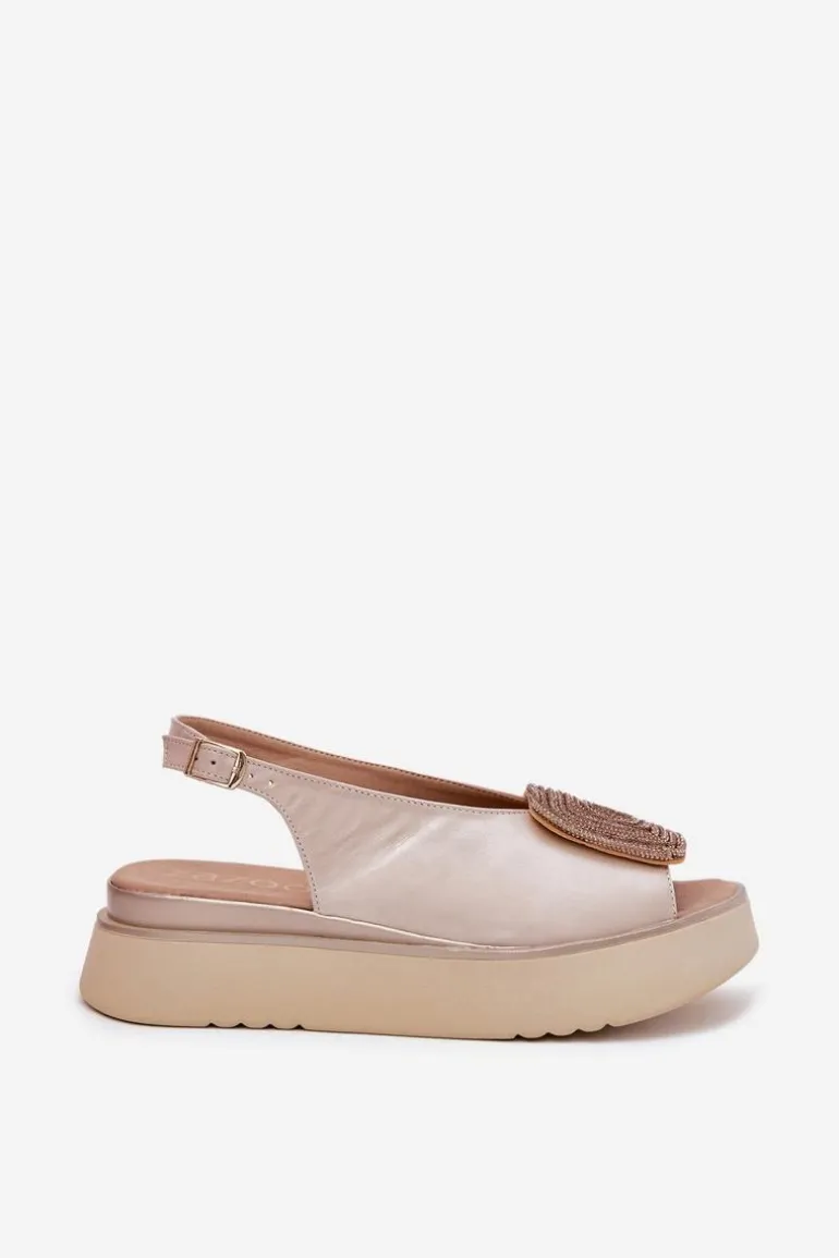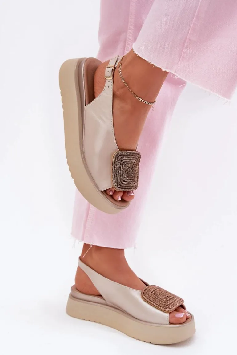 Sandały damskie z naturalnej skóry to połączenie klasyki i wygody. Osadzone na platformie, zapewniają stabilność i komfort podczas noszenia. Ozdoba z przodu dodaje blasku, podkreślając ich wyjątkowy wygląd. Zapinane na regulowany pasek ze sprzączką gwarantują idealne dopasowanie do stopy. Te sandały są nie tylko stylowe, ale także praktyczne i funkcjonalne – idealne na różne okazje. Przy wyborze rozmiaru prosimy kierować się tabelą rozmiarów.