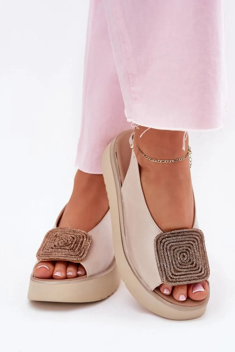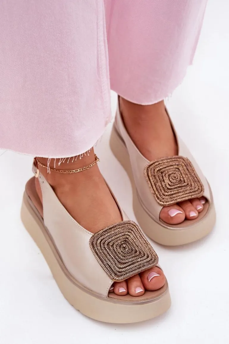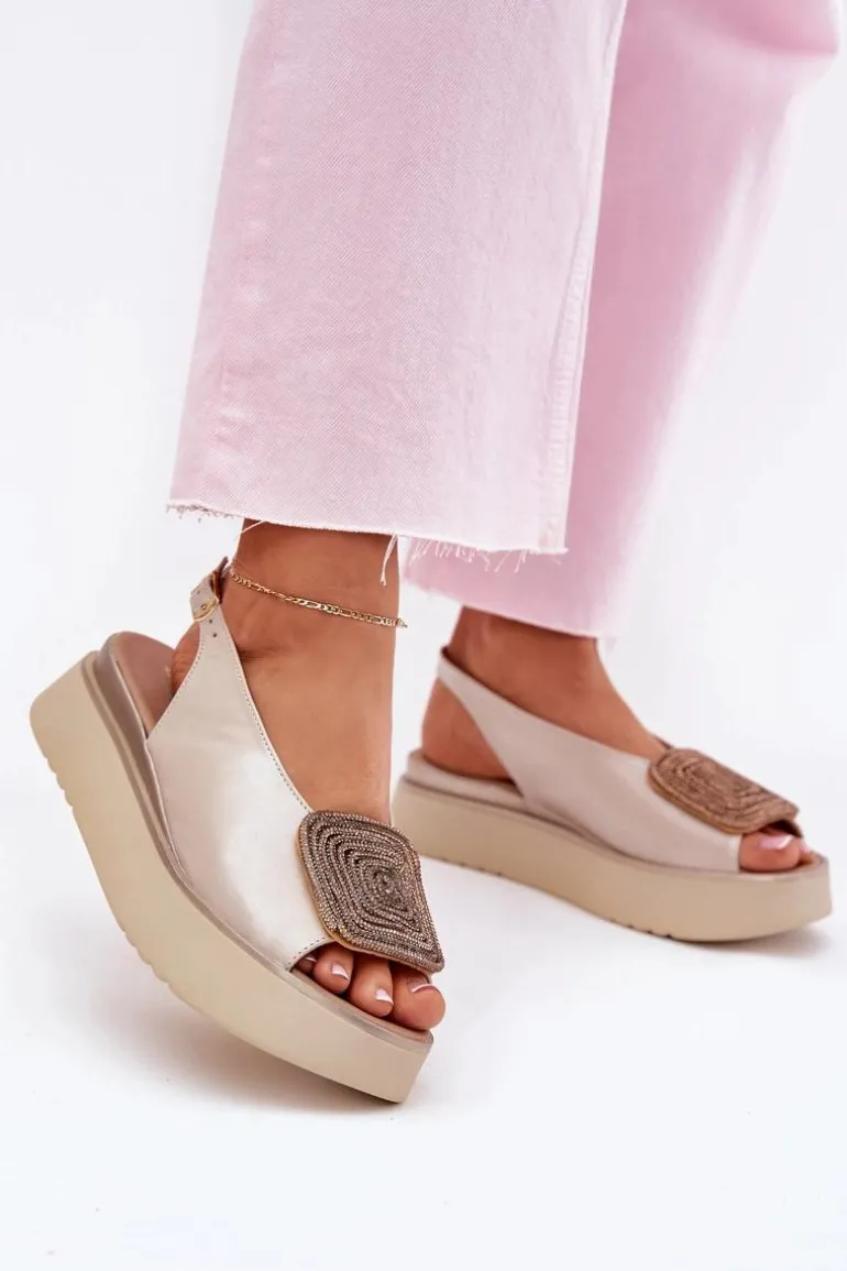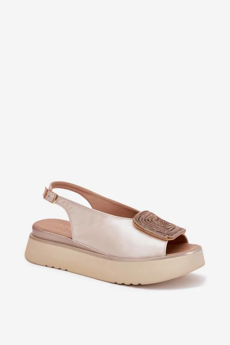 Sandały damskie z naturalnej skóry to połączenie klasyki i wygody. Osadzone na platformie, zapewniają stabilność i komfort podczas noszenia. Ozdoba z przodu dodaje blasku, podkreślając ich wyjątkowy wygląd. Zapinane na regulowany pasek ze sprzączką gwarantują idealne dopasowanie do stopy. Te sandały są nie tylko stylowe, ale także praktyczne i funkcjonalne – idealne na różne okazje. Przy wyborze rozmiaru prosimy kierować się tabelą rozmiarów.