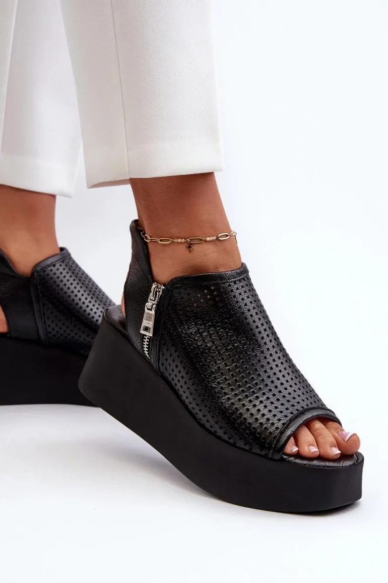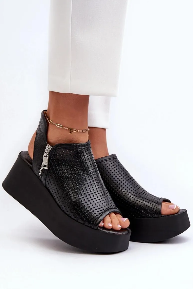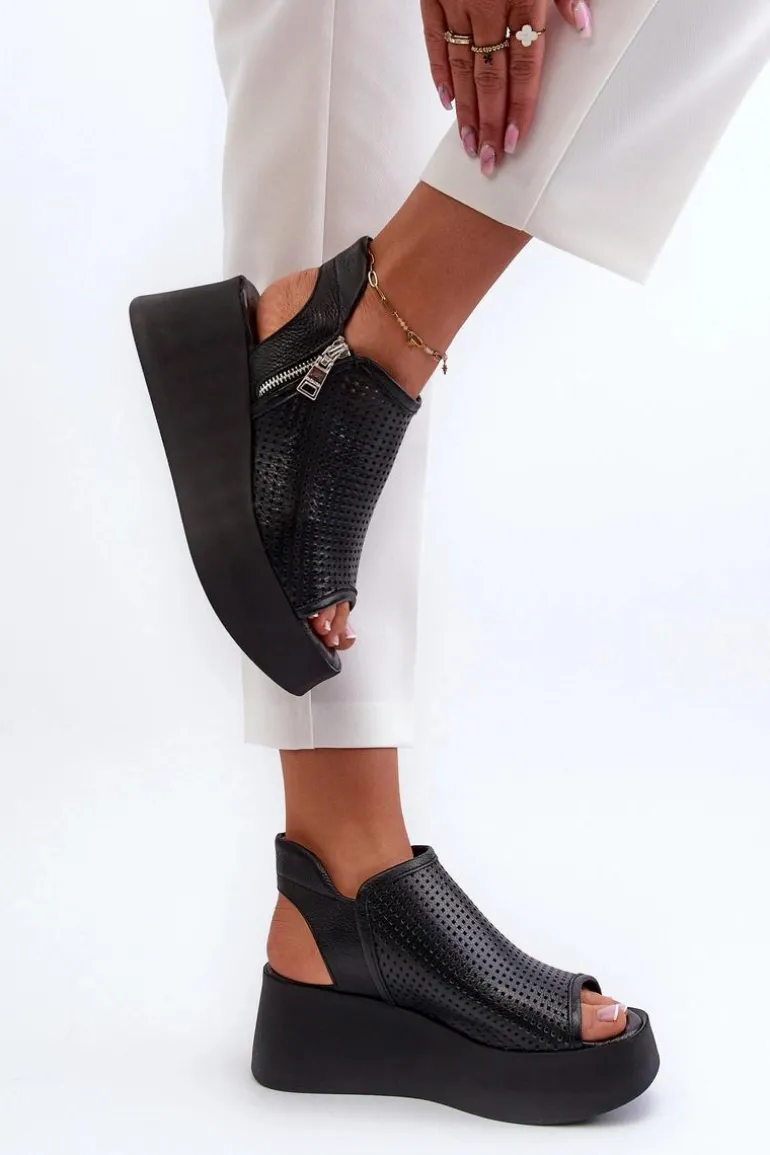 Sandały damskie na koturnie to połączenie elegancji i wygody. Wykonane ze skóry naturalnej, zapewniają trwałość i komfort noszenia. Delikatny ażurowy wzorek nadaje im lekkości i wdzięku, idealnie pasując do letnich stylizacji. Zapinane na zamek gwarantują stabilne trzymanie stopy. To doskonały wybór na letnie dni, zarówno do codziennych, jak i bardziej formalnych okazji. Przy wyborze rozmiaru prosimy kierować się tabelą rozmiarów.