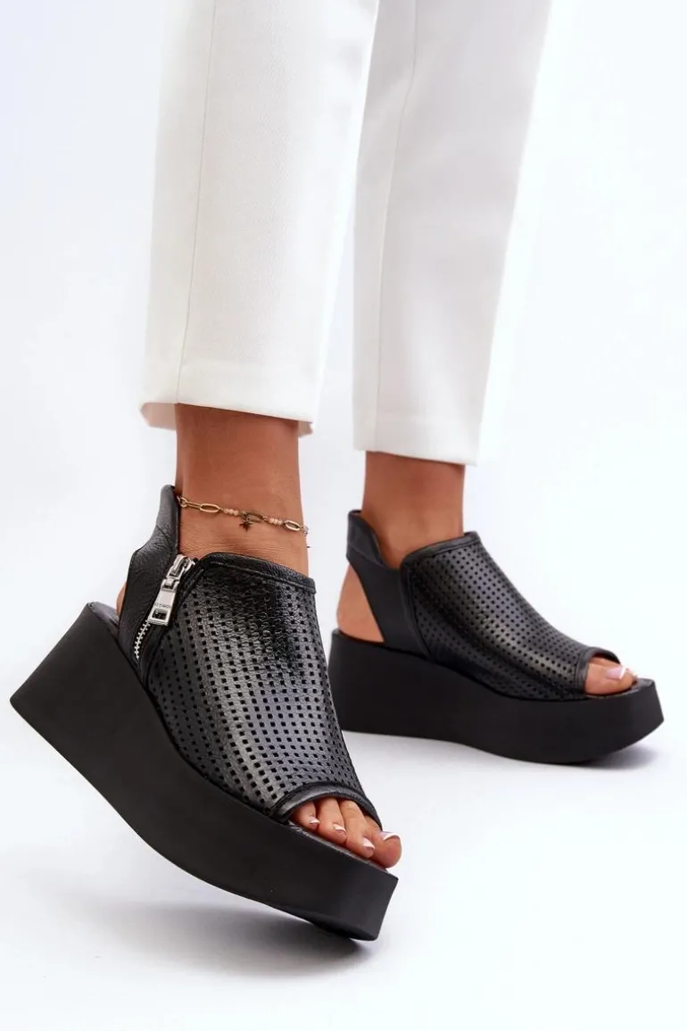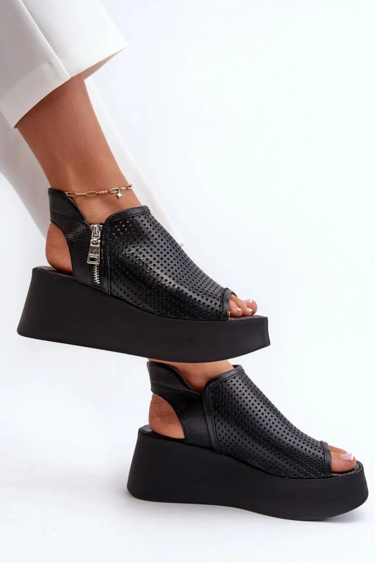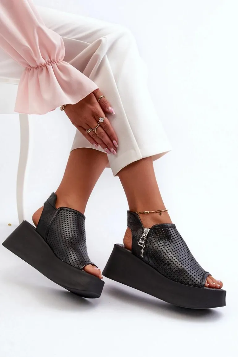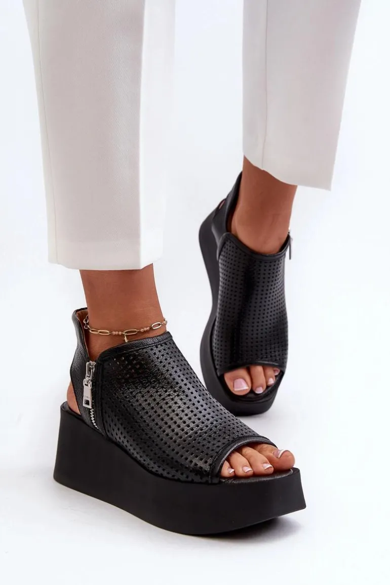 Sandały damskie na koturnie to połączenie elegancji i wygody. Wykonane ze skóry naturalnej, zapewniają trwałość i komfort noszenia. Delikatny ażurowy wzorek nadaje im lekkości i wdzięku, idealnie pasując do letnich stylizacji. Zapinane na zamek gwarantują stabilne trzymanie stopy. To doskonały wybór na letnie dni, zarówno do codziennych, jak i bardziej formalnych okazji. Przy wyborze rozmiaru prosimy kierować się tabelą rozmiarów.