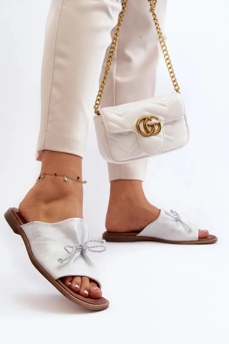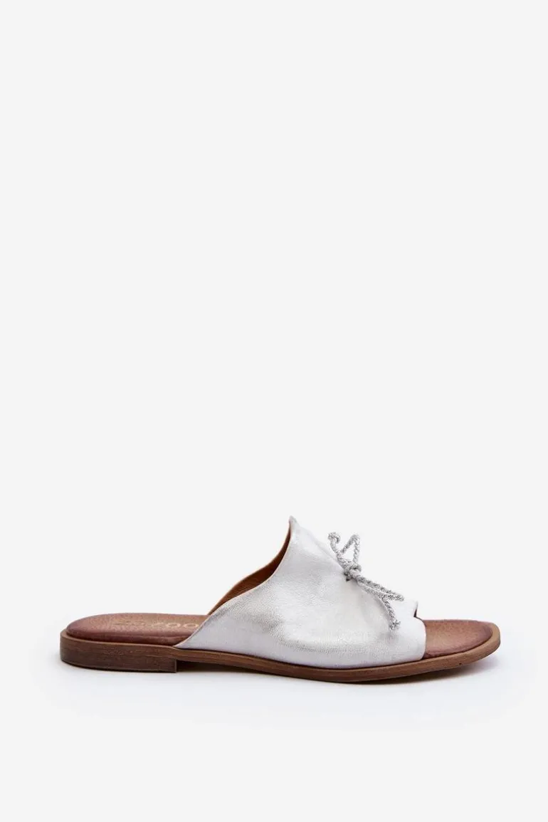 Wygodne klapki ozdobione modnym, plecionym sznureczkiem. Delikatne marszczenie dodaje tym klapkom subtelnego wyglądu. Buty wykonane są w całości ze skóry. Posiadają sztywną, wykonaną z tworzywa sztucznego podeszwę. Miękka wkładka zapewni komfort nawet w upalne dni! Koniecznie sprawdź całą naszą kolekcję damskich klapek! Przy wyborze rozmiaru prosimy sugerować się tabelą rozmiarów.