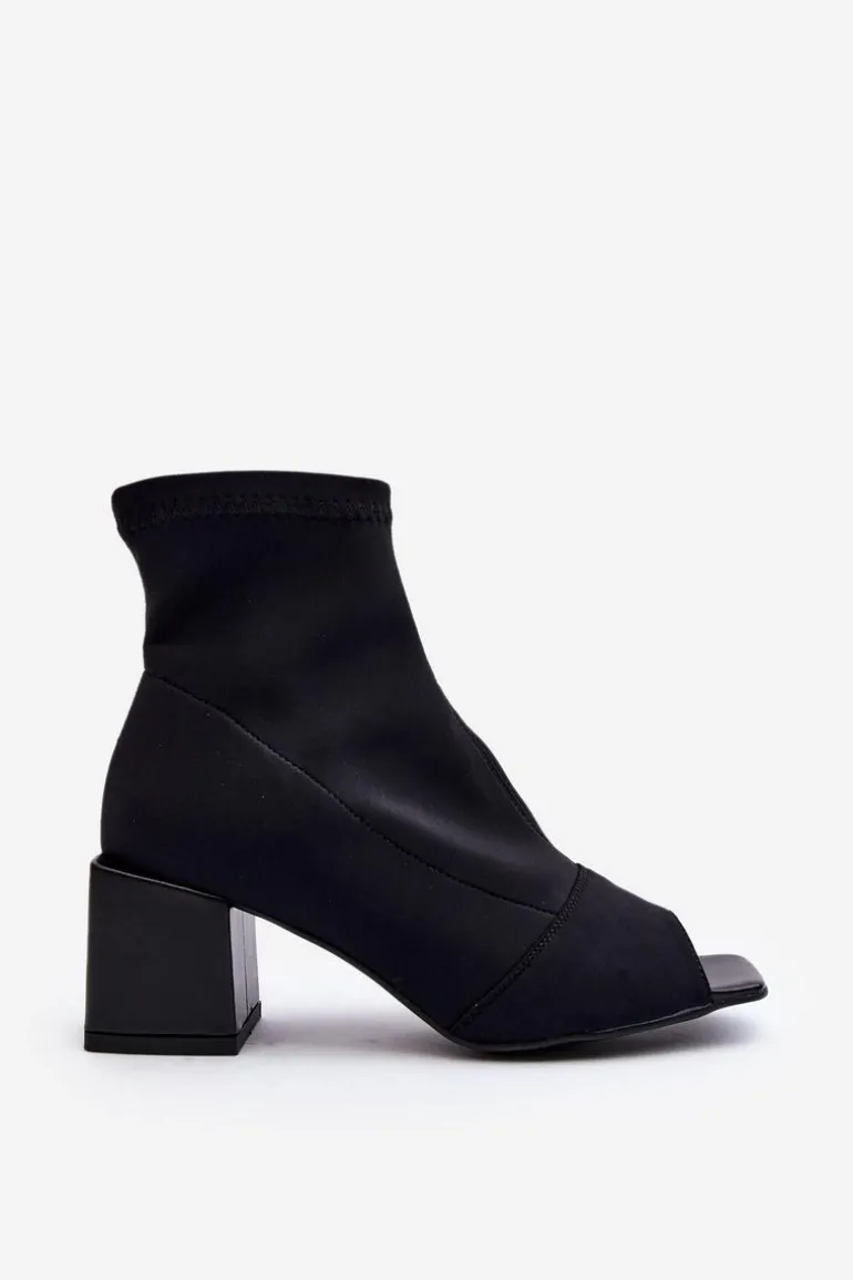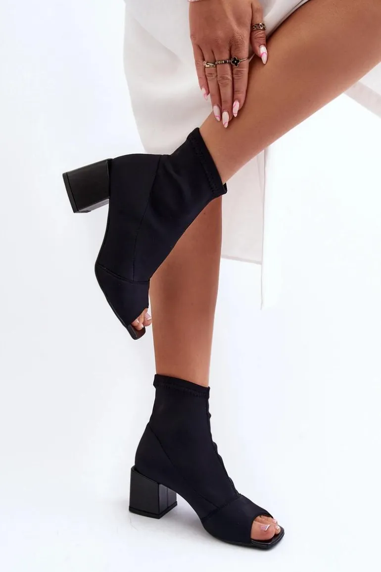 Botki damskie wykonane z materiału tekstylnego. Osadzone na obcasie w postaci klocka. Cholewka za kostkę wzbogacona przeszyciami. Model wsuwany. Wkładka ze skóry naturalnej zapewni komfort podczas użytkowania. Noski odkryte. Ten niezwykle stylowy model wykorzystasz do wielu wiosennych stylizacji! Przy wyborze rozmiaru prosimy kierować się tabelą rozmiarów