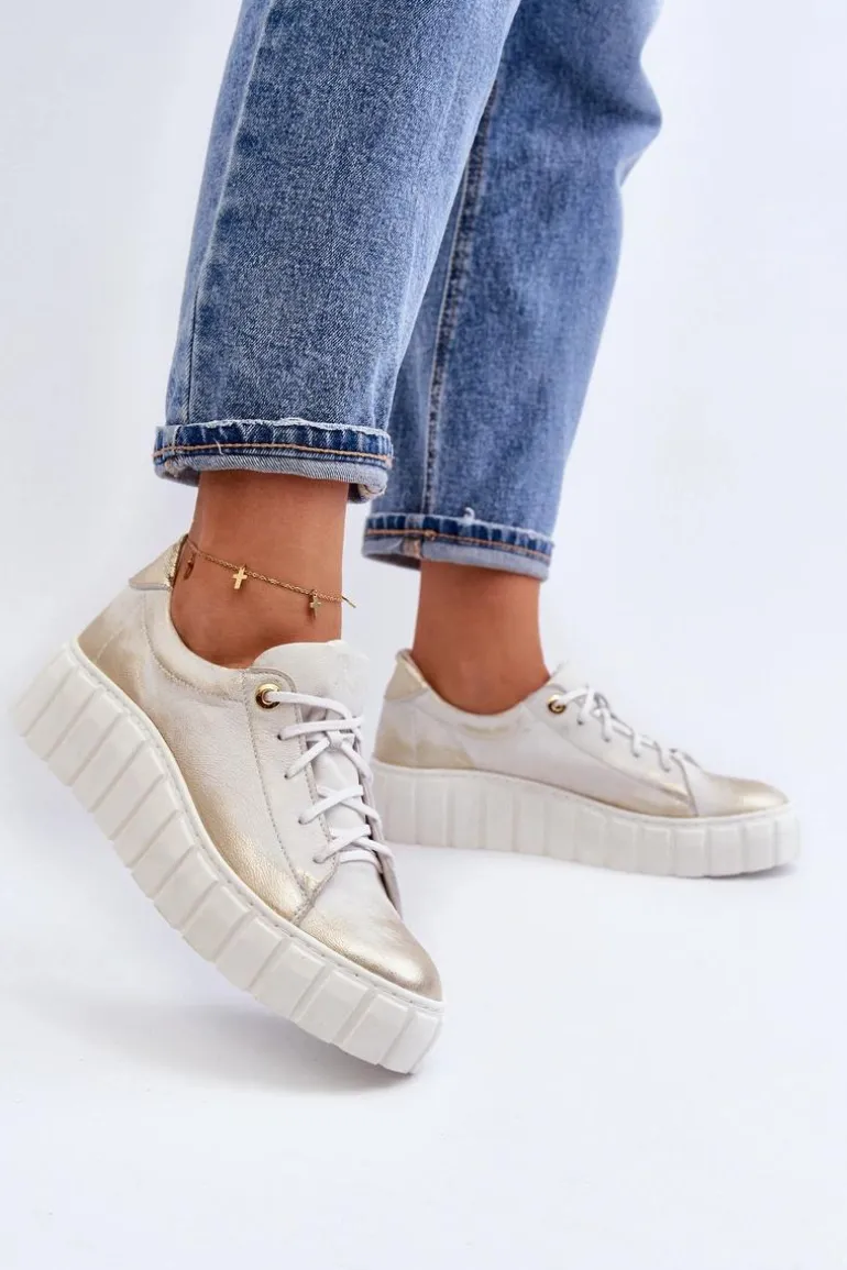 Półbuty damskie wykonane ze skóry naturalnej. Osadzone na grubej podeszwie z gumowego tworzywa. Model klasycznie sznurowany. Noski zaokrąglone. Miękka wkładka ze skóry naturalnej zapewni komfort podczas użytkowania. Idealne do wielu stylizacji. Koniecznie powinnaś je mieć! Przy wyborze rozmiaru prosimy sugerować się tabelą rozmiarów.