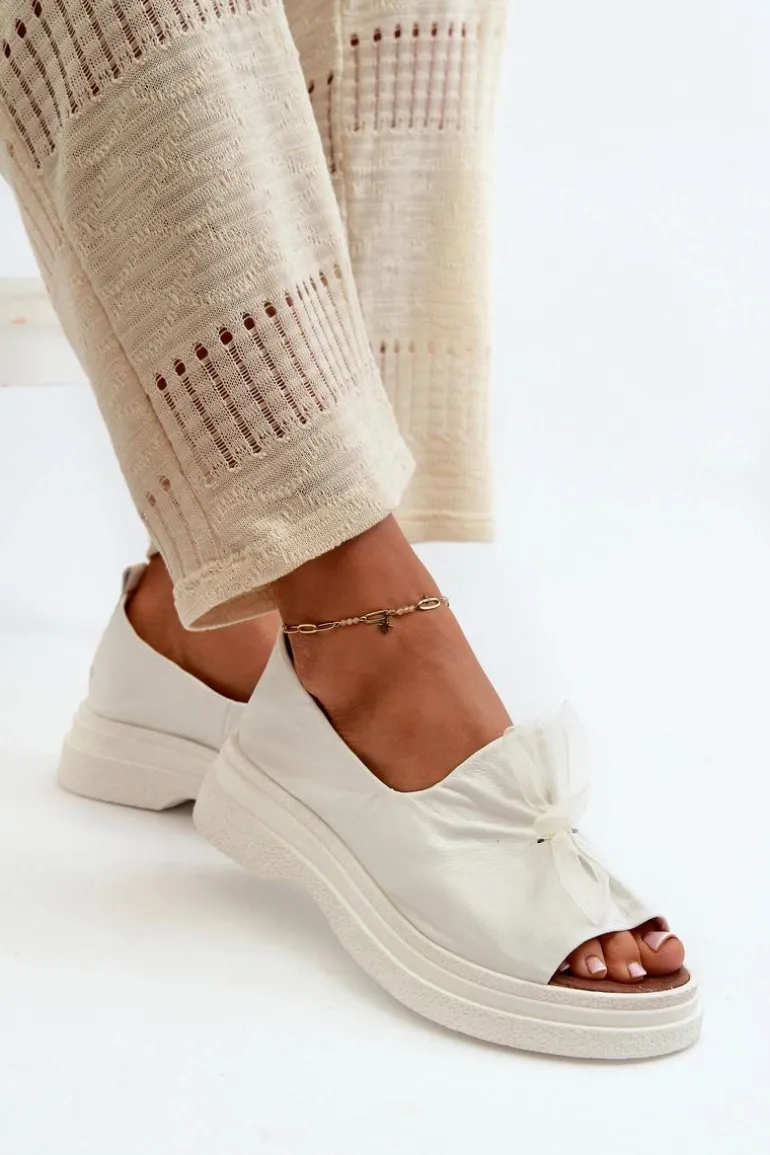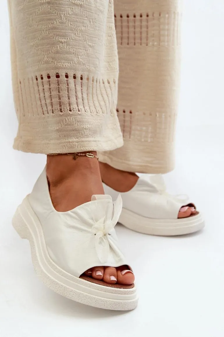 Damskie sandały wykonane ze skóry naturalnej to elegancki i komfortowy wybór na ciepłe dni. Osadzone na grubej, solidnej podeszwie, zapewniają stabilność i wygodę noszenia przez cały dzień. Miękka, skórzana wkładka dodatkowo zwiększa komfort użytkowania. Przód sandałów ozdobiony uroczą kokardką dodaje im subtelnego uroku i sprawia, że stanowią stylowy element każdej letniej stylizacji. Przy wyborze rozmiaru prosimy kierować się tabelą rozmiarów.