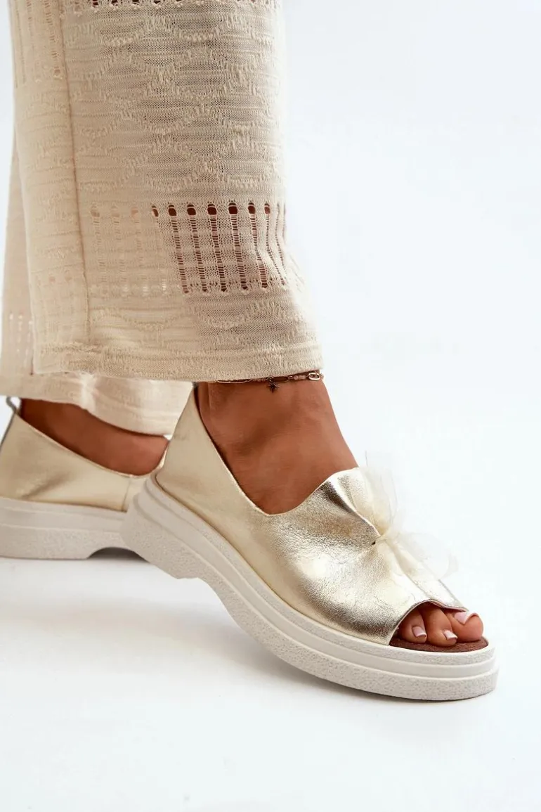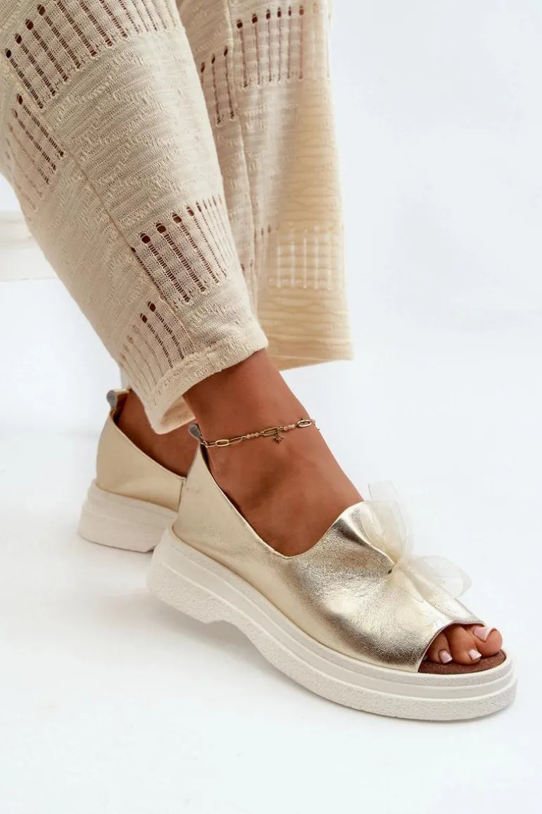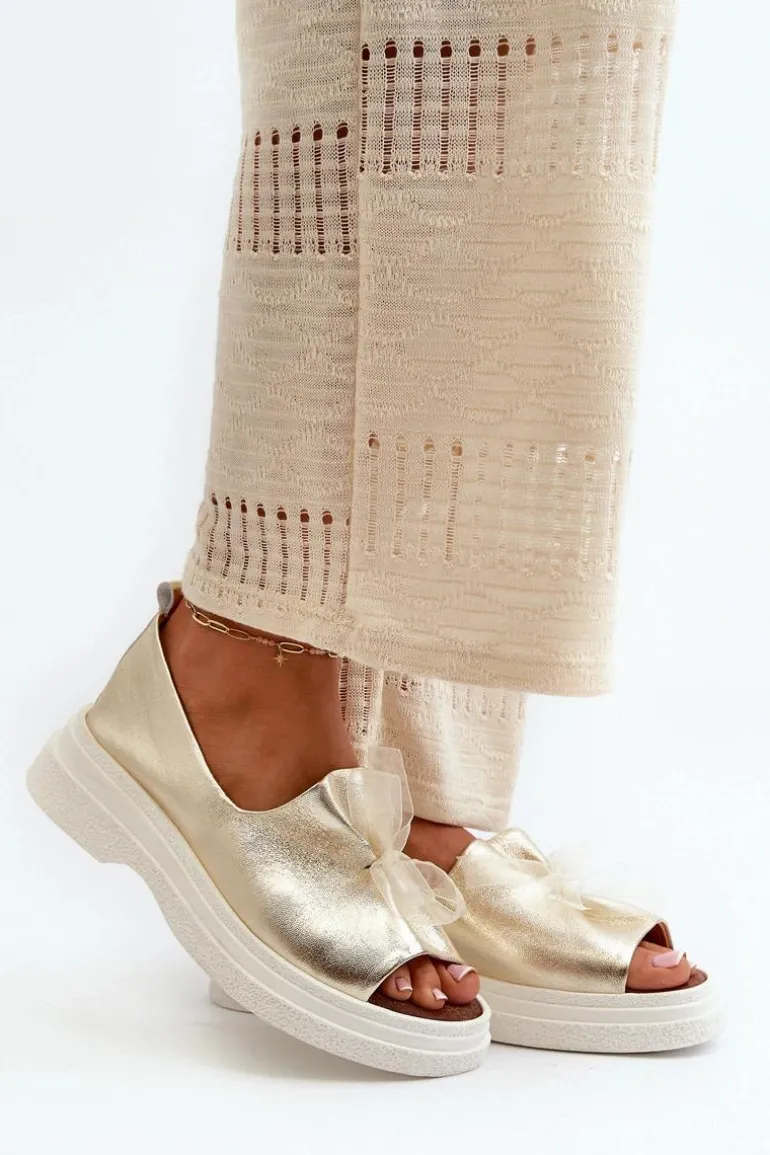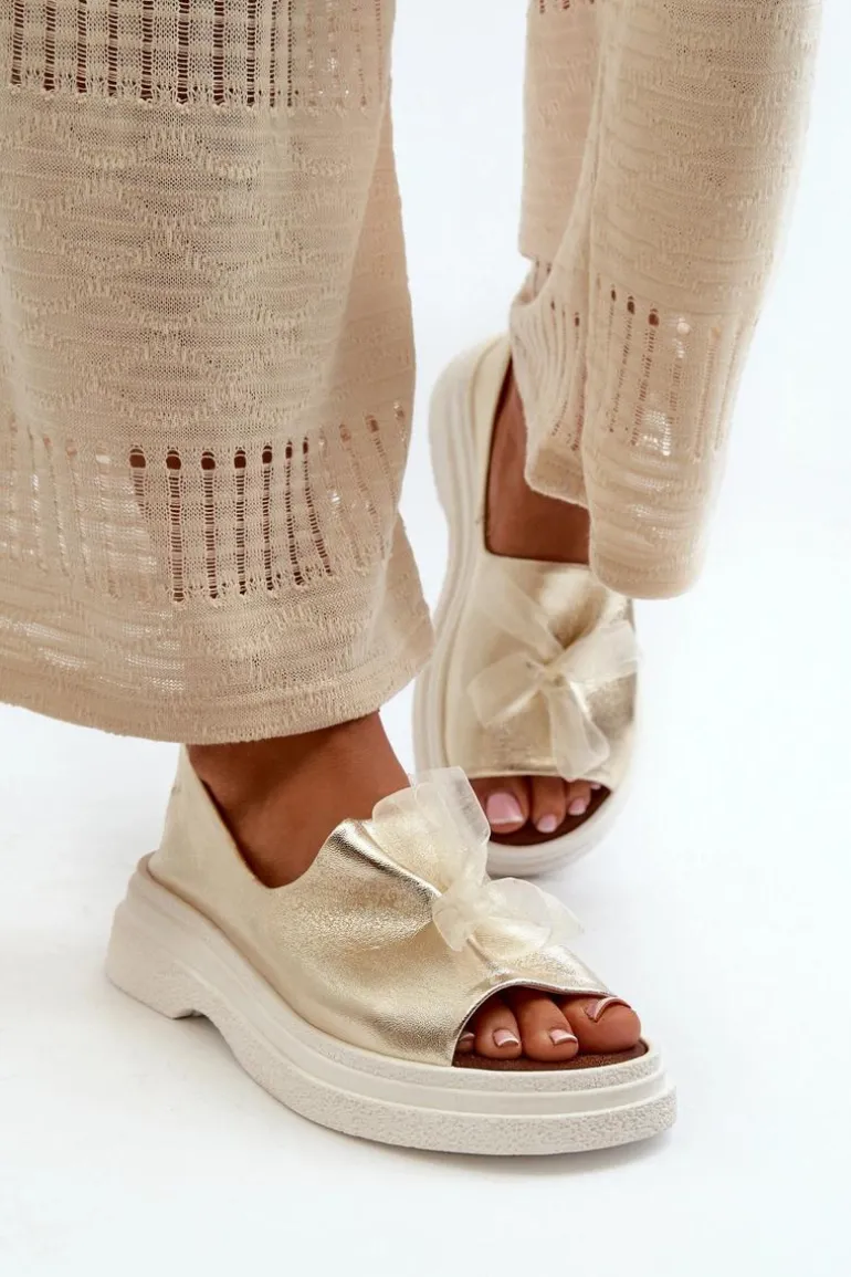 Damskie sandały wykonane ze skóry naturalnej to elegancki i komfortowy wybór na ciepłe dni. Osadzone na grubej, solidnej podeszwie, zapewniają stabilność i wygodę noszenia przez cały dzień. Miękka, skórzana wkładka dodatkowo zwiększa komfort użytkowania. Przód sandałów ozdobiony uroczą kokardką dodaje im subtelnego uroku i sprawia, że stanowią stylowy element każdej letniej stylizacji. Przy wyborze rozmiaru prosimy kierować się tabelą rozmiarów.
