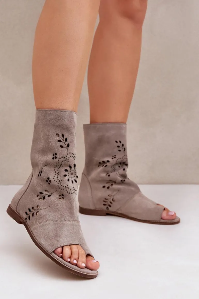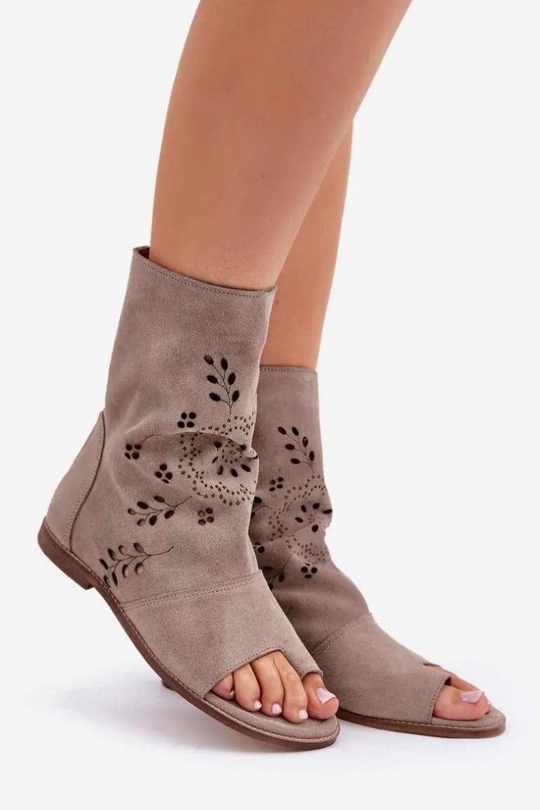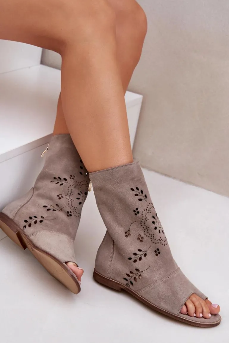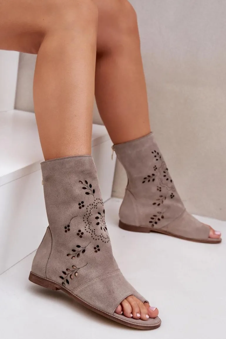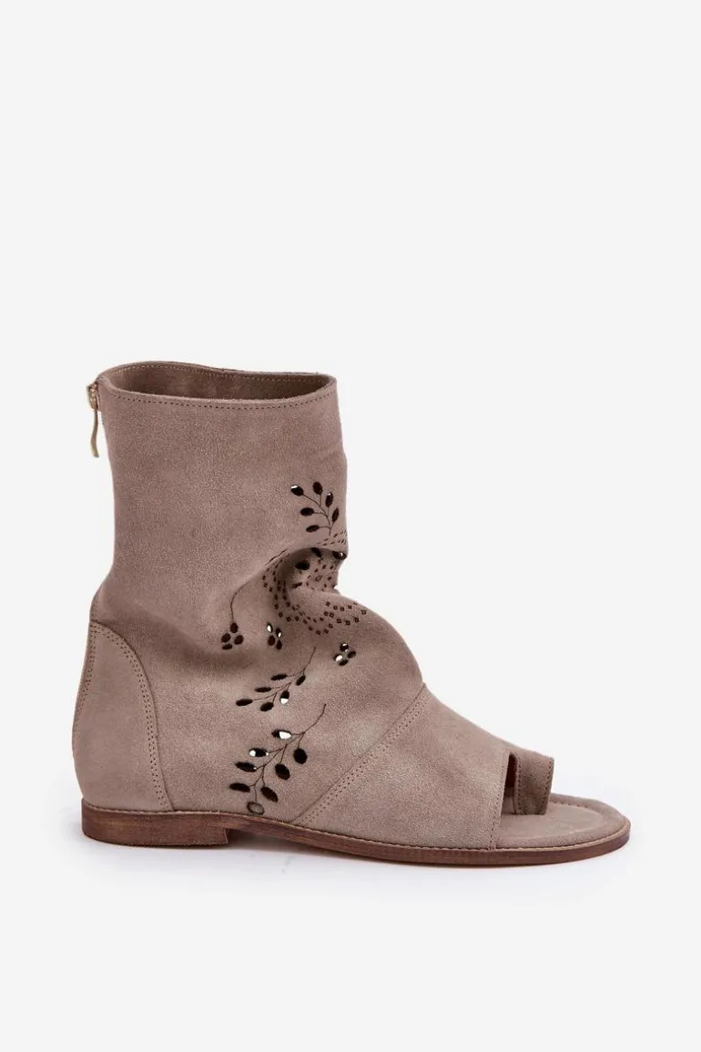 Te wyjątkowe sandały na płaskim obcasie to połączenie elegancji i wygody. Wykonane z wysokiej jakości naturalnego zamszu zapewniają trwałość i komfort noszenia. Ich cholewka, zapinana na zamek, ozdobiona jest ażurowym wzorem, który nadaje im delikatności i stylu. Doskonale sprawdzą się zarówno na co dzień, jak i na specjalne okazje, dodając Twojej stylizacji wyjątkowego uroku. Przy wyborze rozmiaru prosimy sugerować się tabelą rozmiarów.