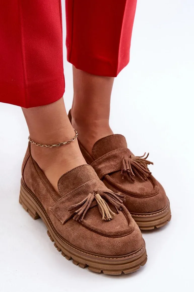 Mokasyny damskie z naturalnego zamszu są bardzo stylowe i wygodne. Przód ozdobiony frędzlami. Osadzone na platformie i płaskim obcasie, co daje pewność podczas chodzenia. Lekki profilowana, skórzana wkładka zapewni wygodę. Modny fason, który będzie pasować do różnych stylizacji. Przy wyborze rozmiaru prosimy sugerować się tabelą rozmiarów.
