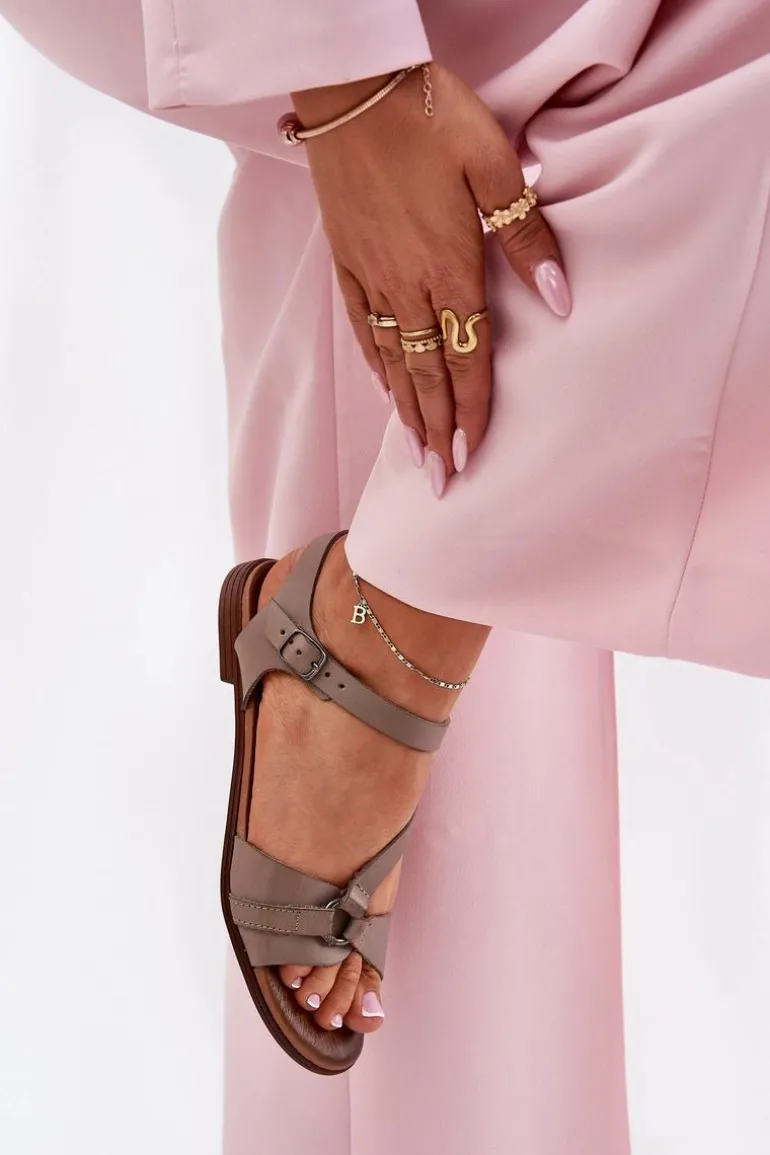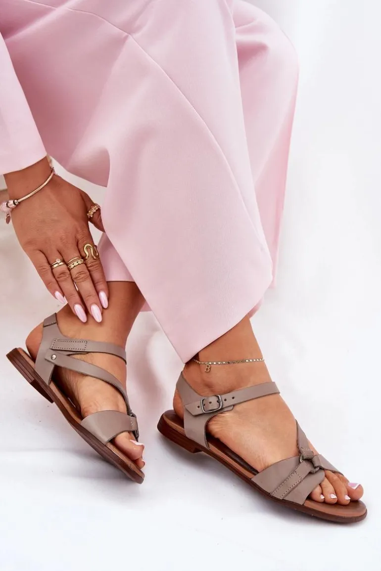 Sandały damskie wykonane ze skóry naturalnej. Osadzone na płaskim obcasie. Zapinane na regulowany pasek ze sprzączką. Skórzana wkładka zapewni wygodę podczas użytkowania. Idealne na upalne dni. Koniecznie musisz je mieć w swojej letniej garderobie! Przy wyborze rozmiaru prosimy kierować się tabelą rozmiarów.