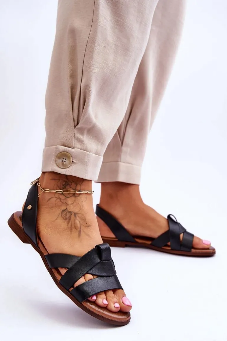 Piękne, a zarazem niezwykle wygodne sandałki damskie. Zostały wykonane z naturalnej skóry. Miękka wkładka zadba o Twój komfort. Sandałki zostały osadzone na płaskim obcasie. Model ten posiada odkrytą piętę oraz palce. Sandałki świetnie sprawdzą się w upalne dni! Koniecznie powinnaś je mieć! Przy wyborze rozmiaru prosimy kierować się tabelą rozmiarów.