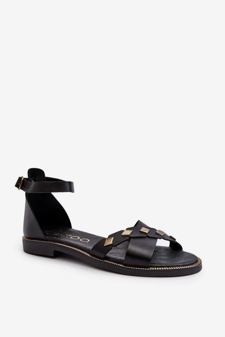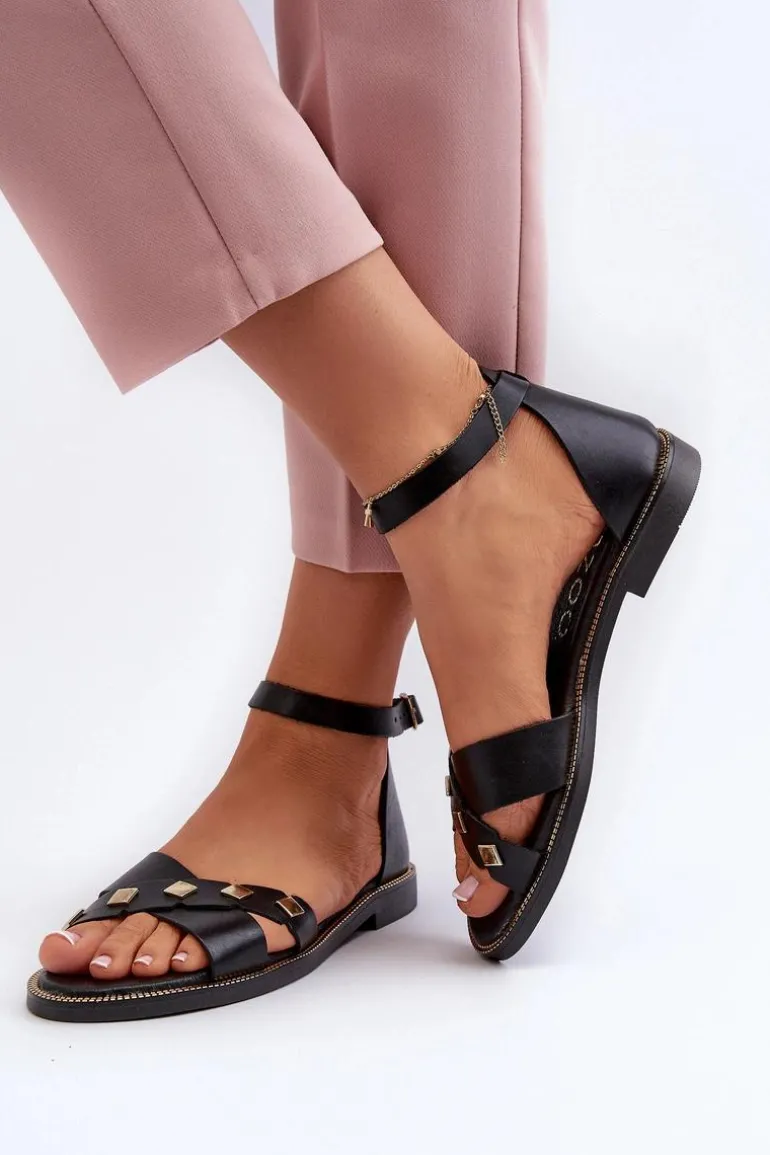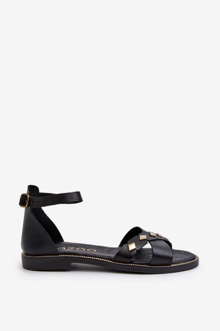 Zazoo 40378 Płaskie Skórzane Sandały Damskie Czarne
