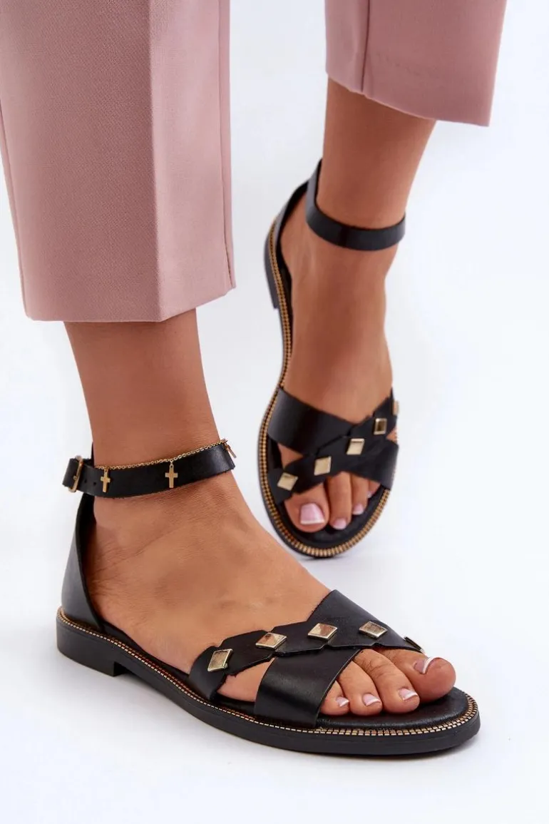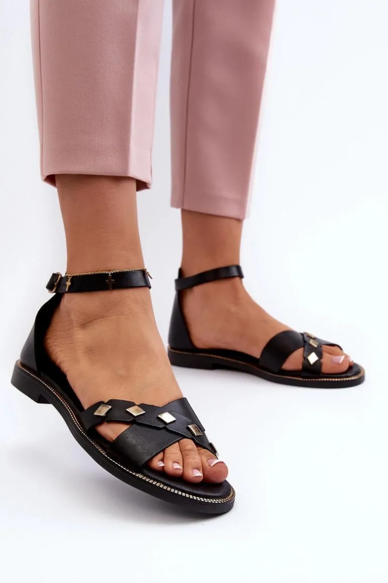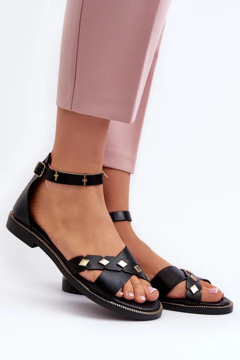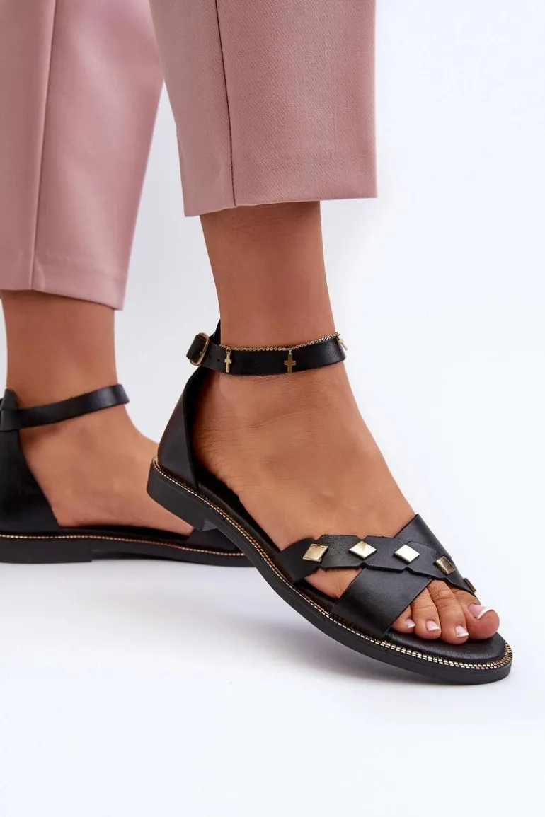 Zazoo 40378 Płaskie Skórzane Sandały Damskie Czarne