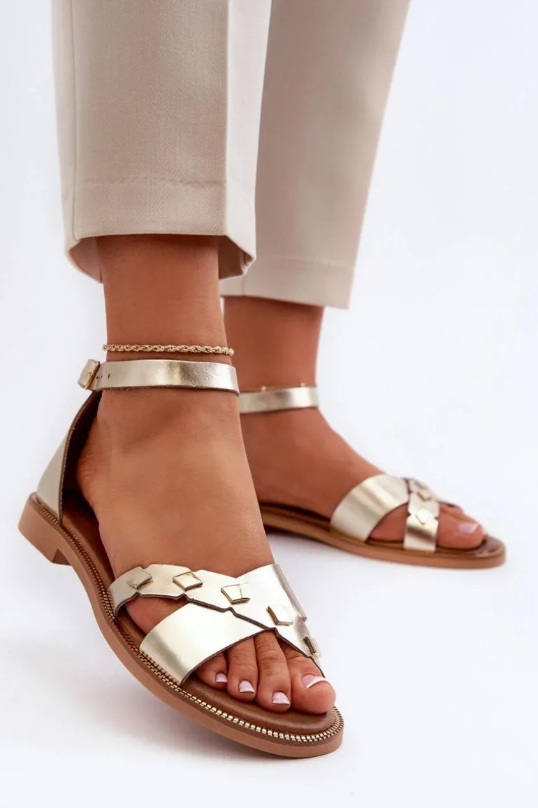 Sandały damskie z płaską podeszwą, wykonane z naturalnej skóry, to wyjątkowo komfortowe i stylowe obuwie na letnie dni. Z przodu posiadają dwa przeplatające się paski. Zapinane na regulowany pasek ze sprzączką, zapewniają idealne dopasowanie do stopy. Te sandały są nie tylko praktyczne, ale także nadają elegancji każdej letniej stylizacji. Przy wyborze rozmiaru prosimy kierować się tabelą rozmiarów.