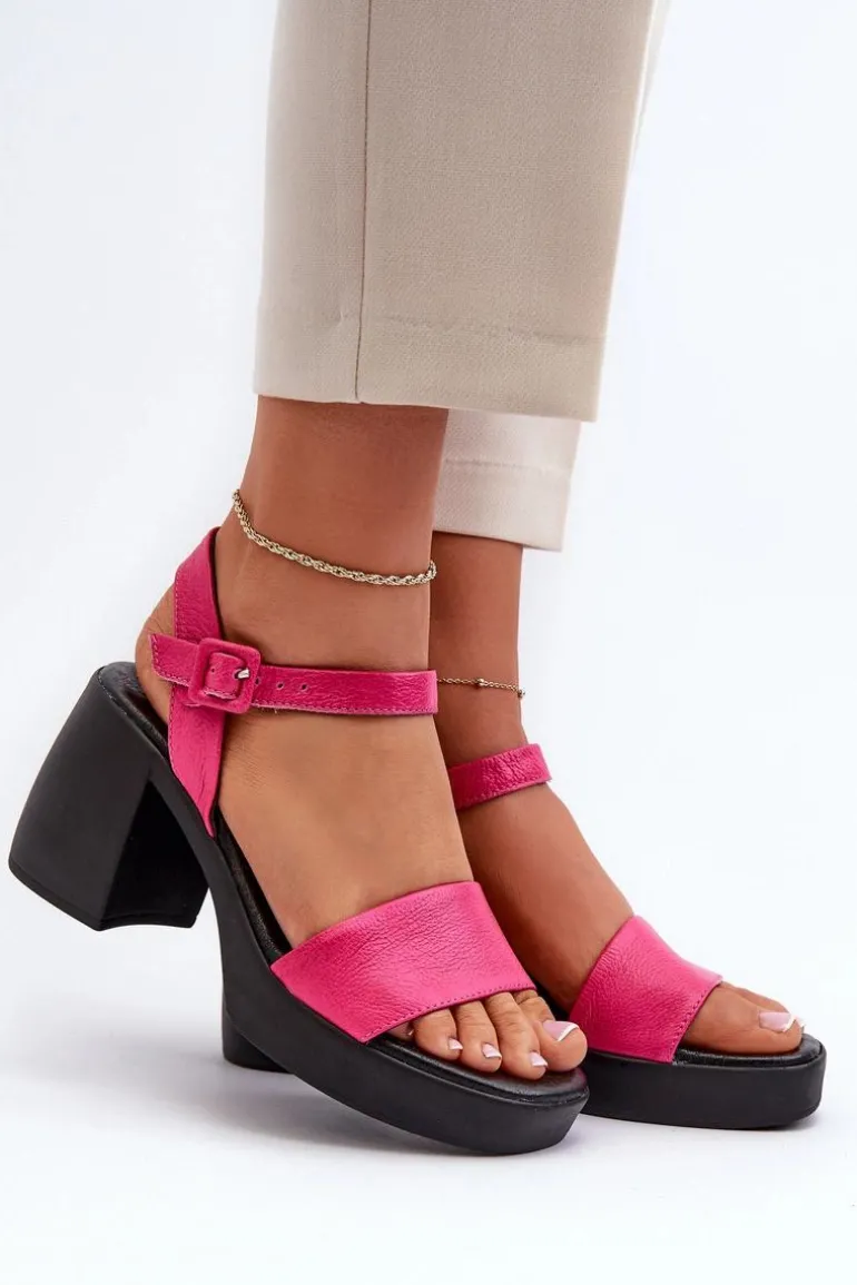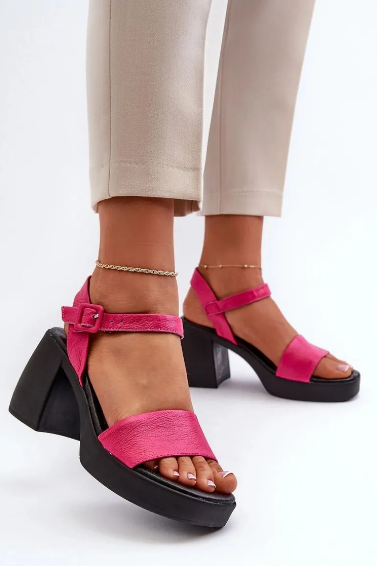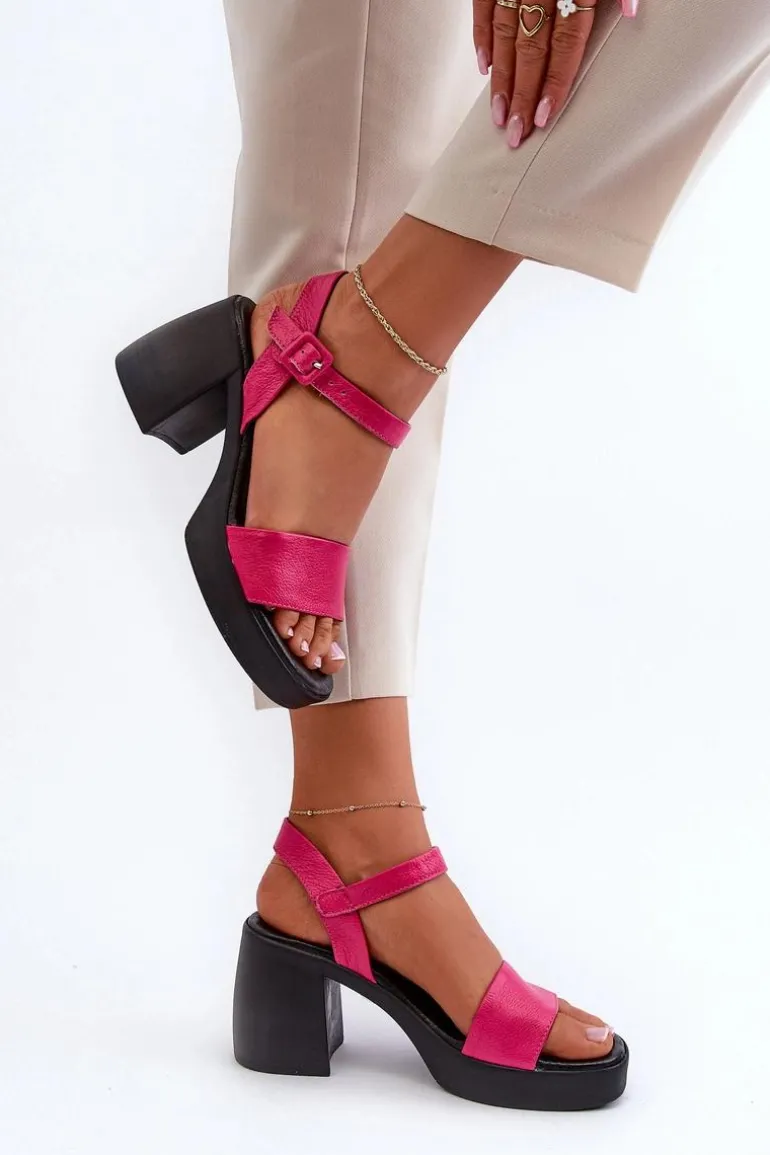 Damskie sandały wykonane z wysokiej jakości skóry naturalnej. Osadzone na masywnym obcasie w postaci klocka. Model ten zapinany jest na regulowany pasek ze sprzączką. Miękka, skórzana wkładka zapewni wygodę podczas użytkowania. Idealne do letnich sukienek, spódnic oraz spodni. Koniecznie powinnaś je mieć! Przy wyborze rozmiaru prosimy sugerować się tabelą rozmiarów.