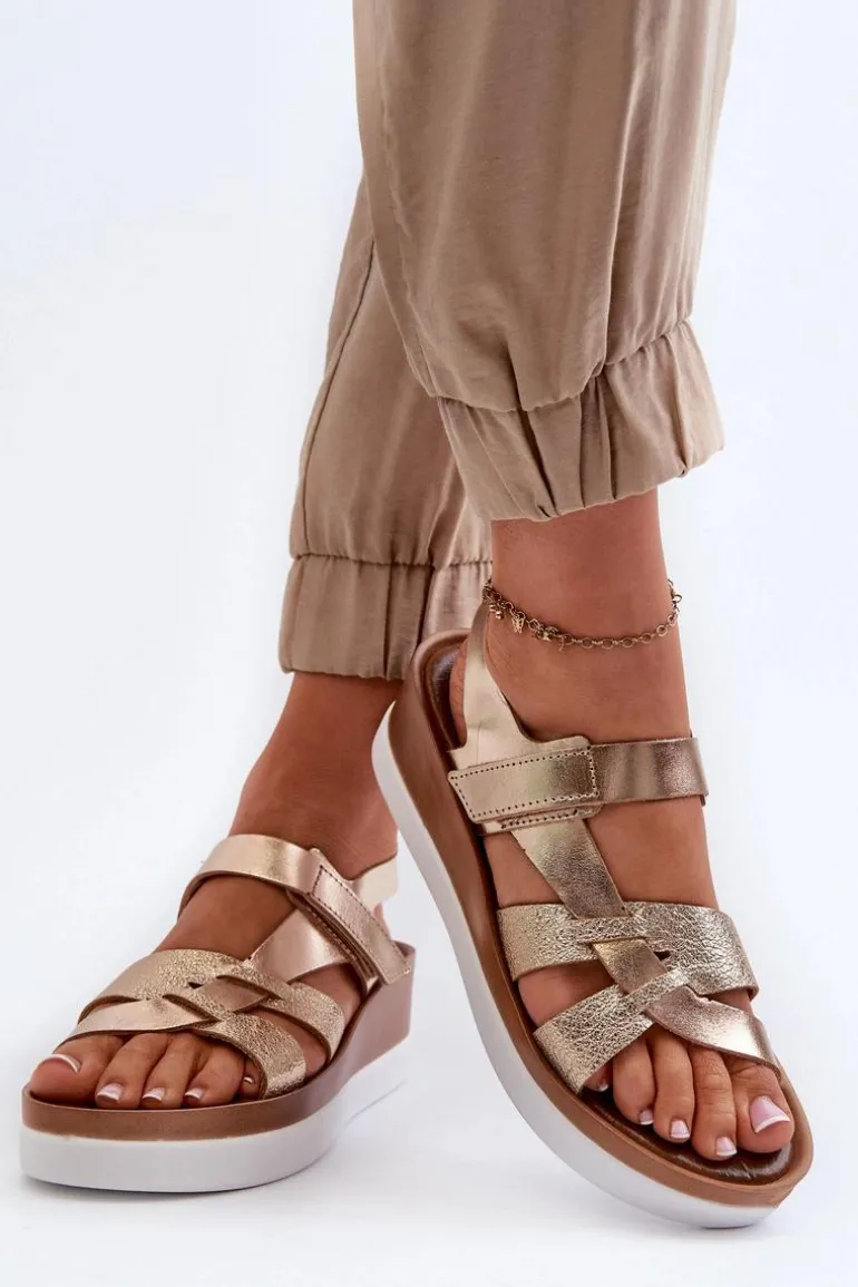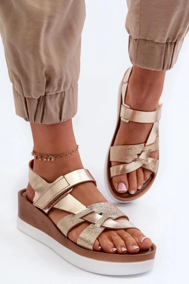 Niezwykle wygodne sandały damskie zostały wykonane z naturalnej skóry. Zapinane na rzep. Osadzone na platformie oraz lekkim koturnie. Miękka, skórzana wkładka zapewni komfort podczas noszenia w upalne dni. Fason ten z pewnością przypadnie Ci do gustu! Przy wyborze rozmiaru prosimy kierować się tabelą rozmiarów.