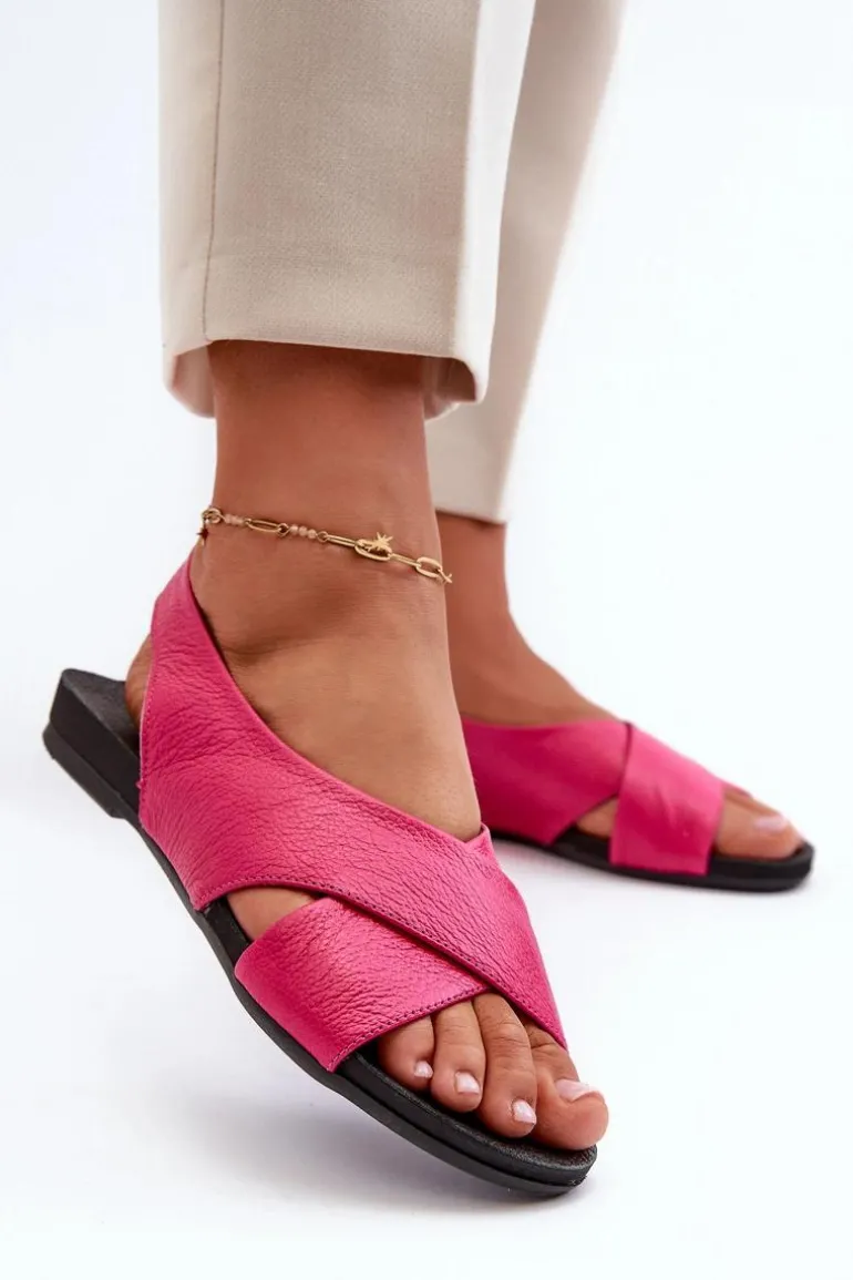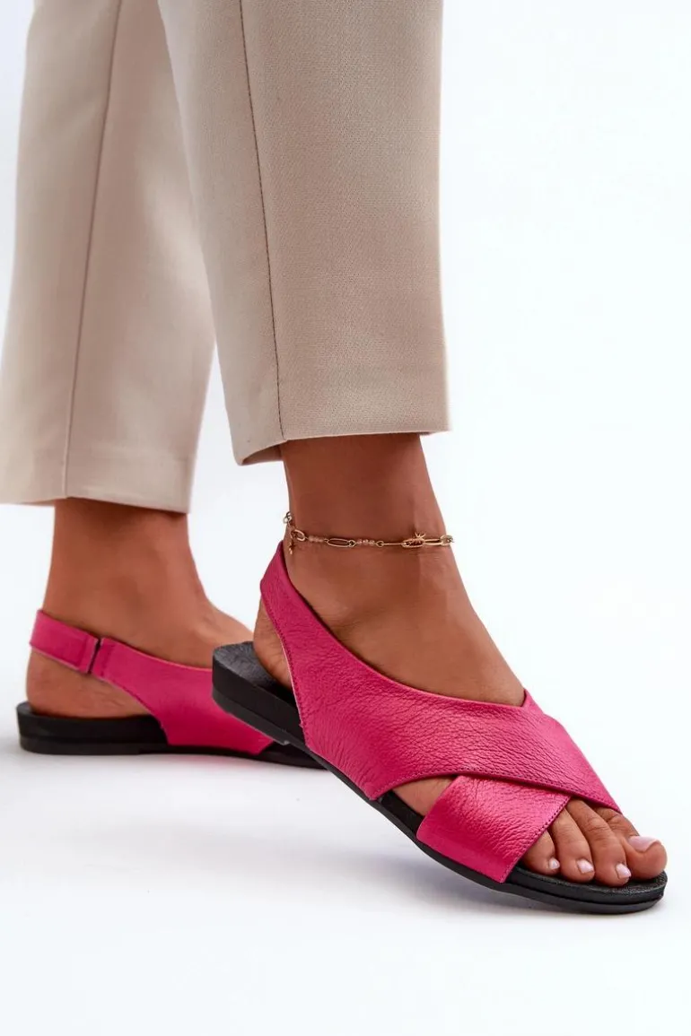 Eleganckie sandały damskie zostały wykonane z wysokiej jakości naturalnej skóry. Osadzone na płaskim obcasie. Sandałki posiadają odkrytą piętę i palce. Miękka, skórzana wkładka zapewni wygodne użytkowanie. Z tyłu na pasku dodatkowa gumka, która zapewni lepszą stabilizację stopy. Idealne do niemalże każdej letniej stylizacji. Koniecznie powinnaś je mieć! Przy wyborze rozmiaru prosimy kierować się tabelą rozmiarów.