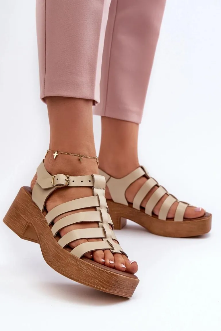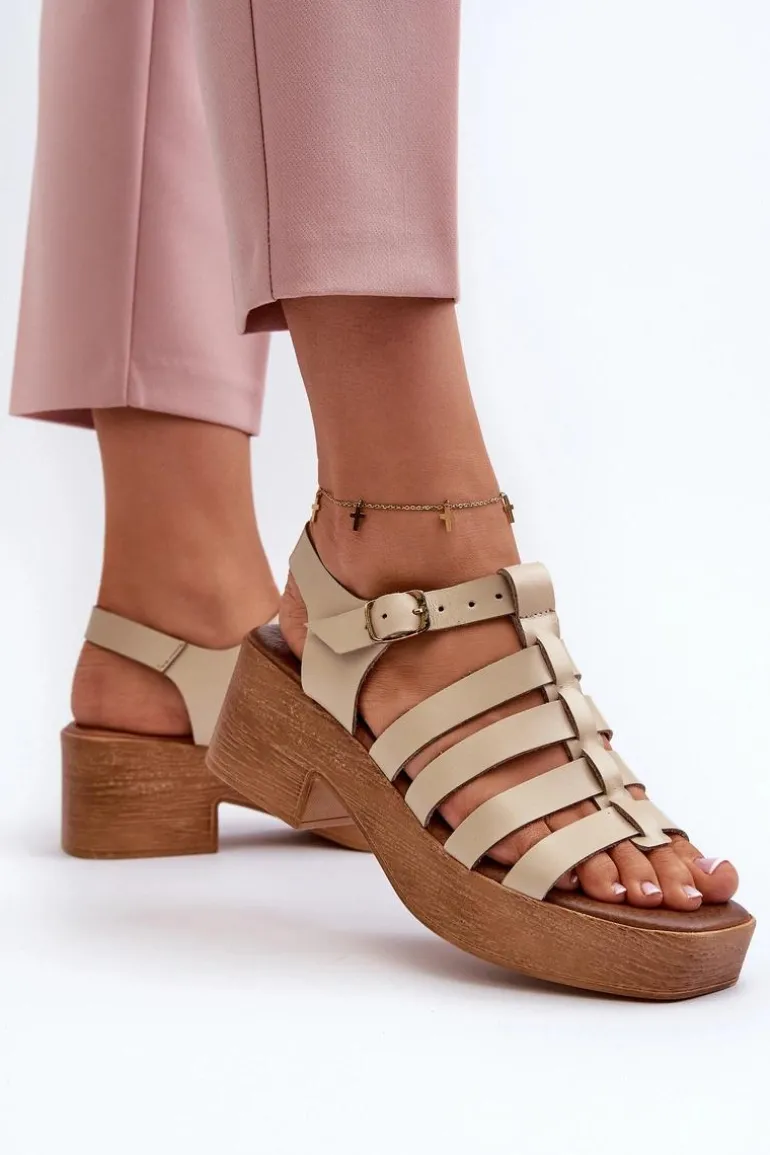 Sandały damskie wykonane ze skóry naturalnej. Regulowany pasek ze sprzączką zapewnia idealne dopasowanie do stopy, natomiast skórzana wkładka gwarantuje komfort noszenia przez długi czas. Modne i wygodne sandały są doskonałym wyborem na letnie dni, dodając elegancji każdej stylizacji. Przy wyborze rozmiaru prosimy kierować się tabelą rozmiarów.