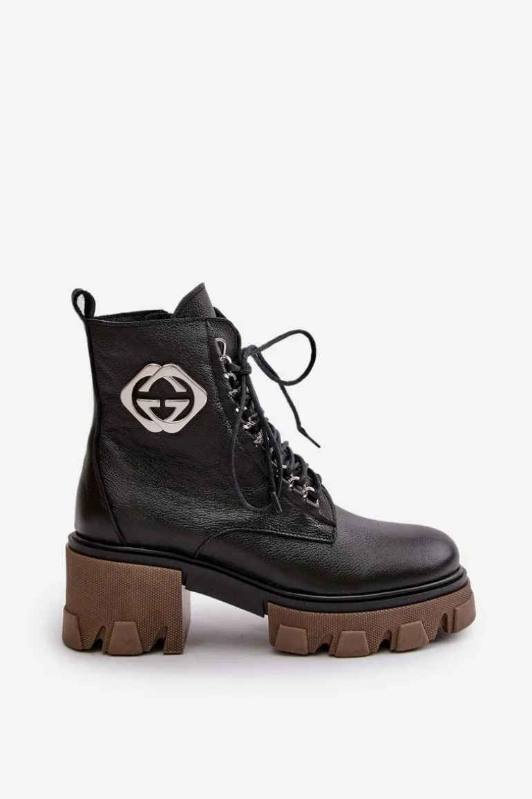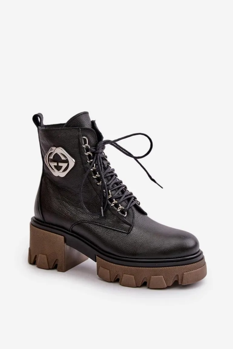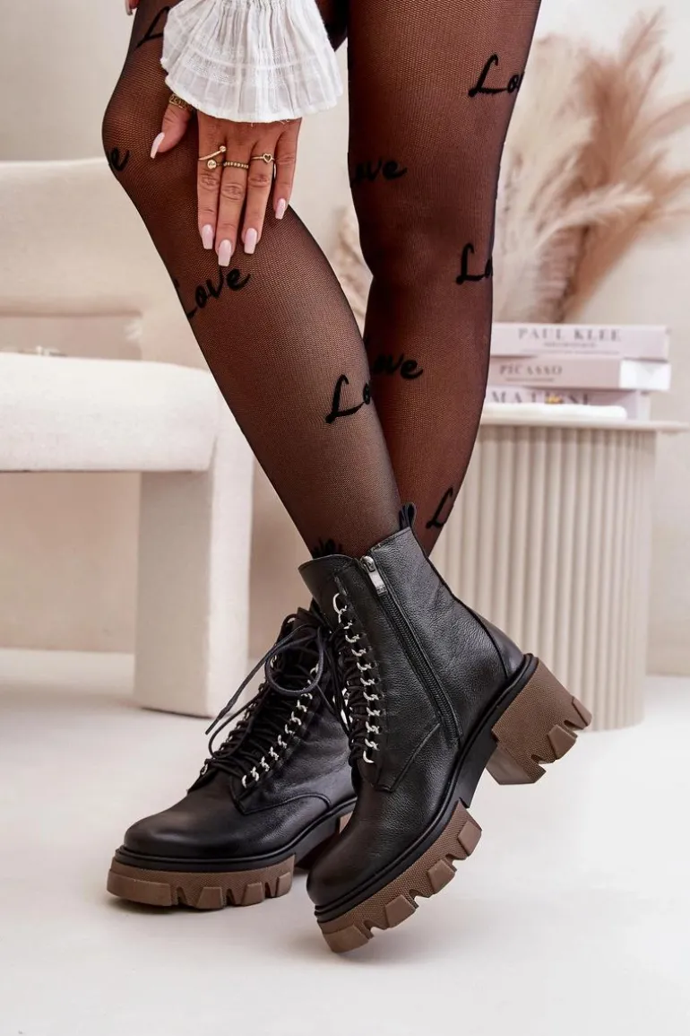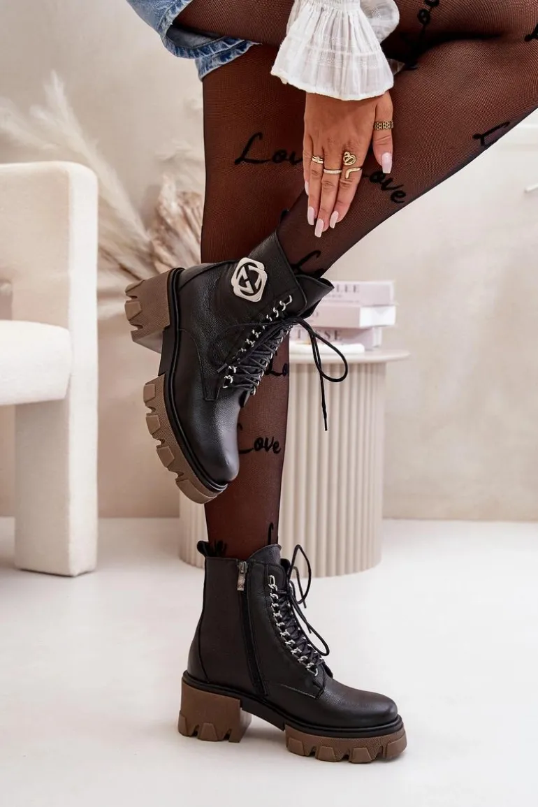 Zazoo 60376 Skórzane Ocieplane Botki Na Suwak Czarne