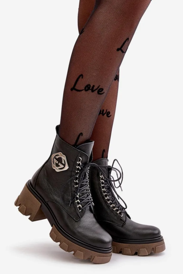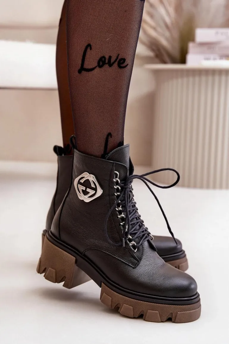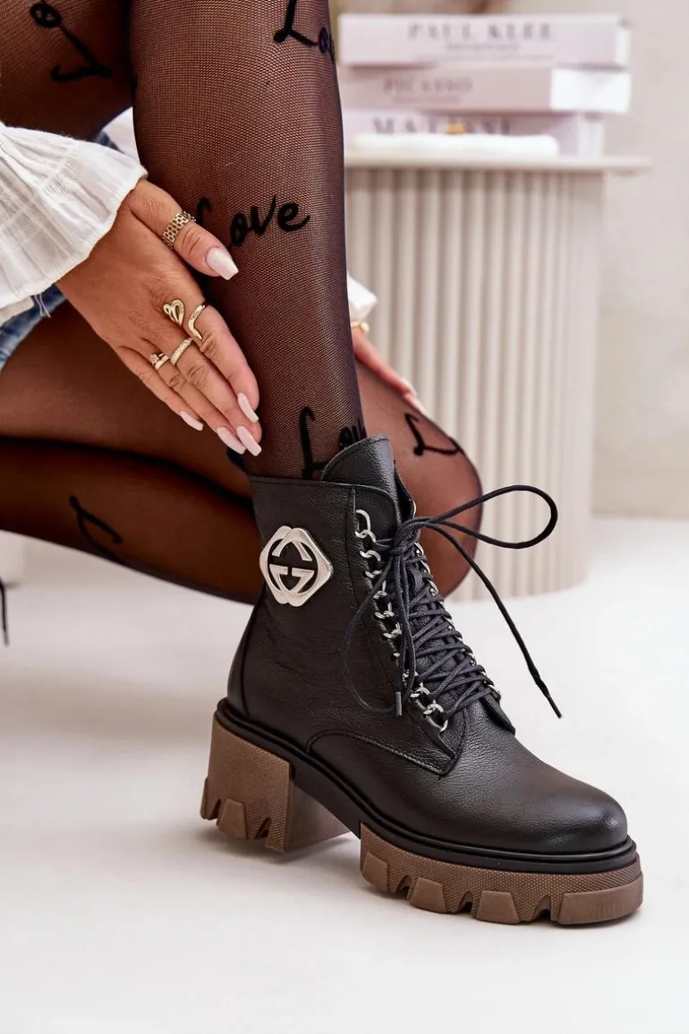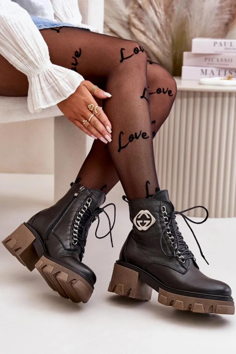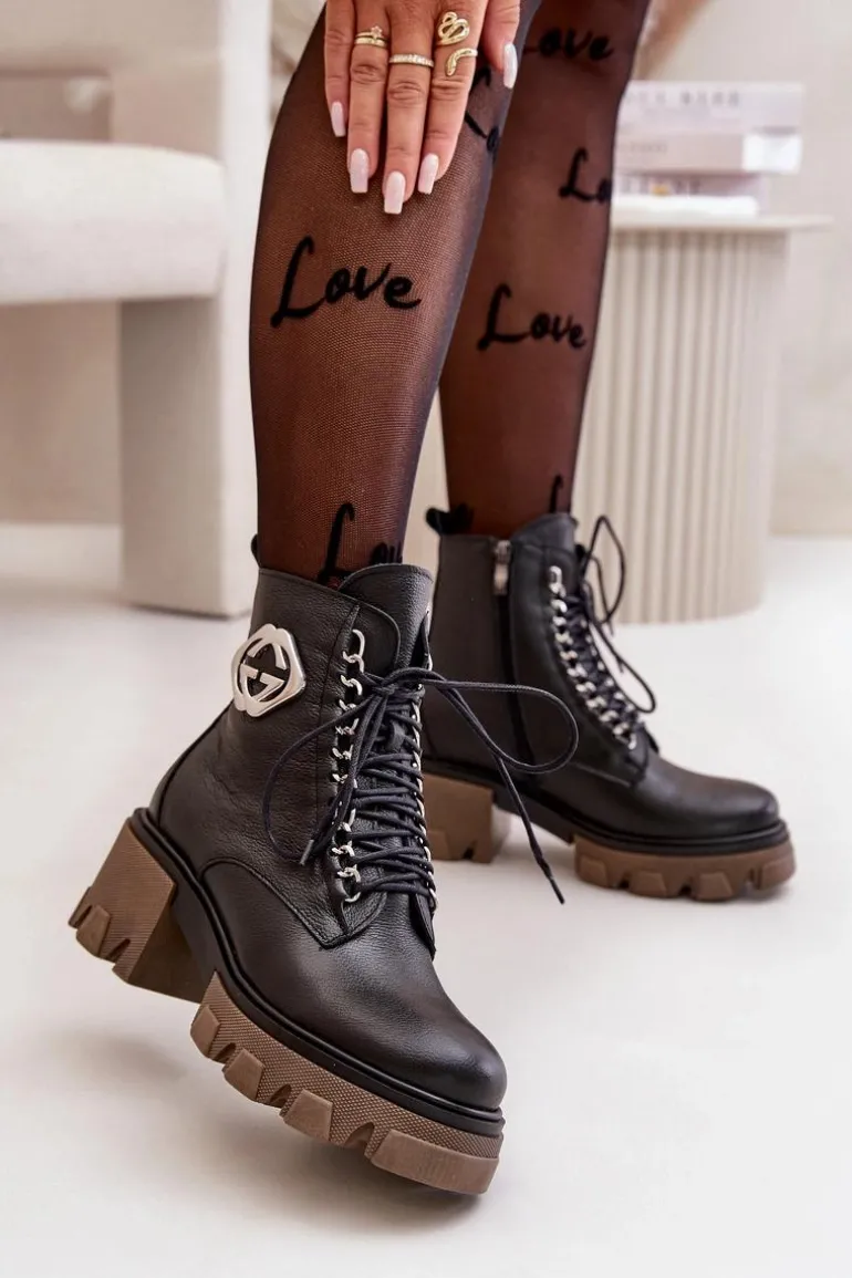 Zazoo 60376 Skórzane Ocieplane Botki Na Suwak Czarne