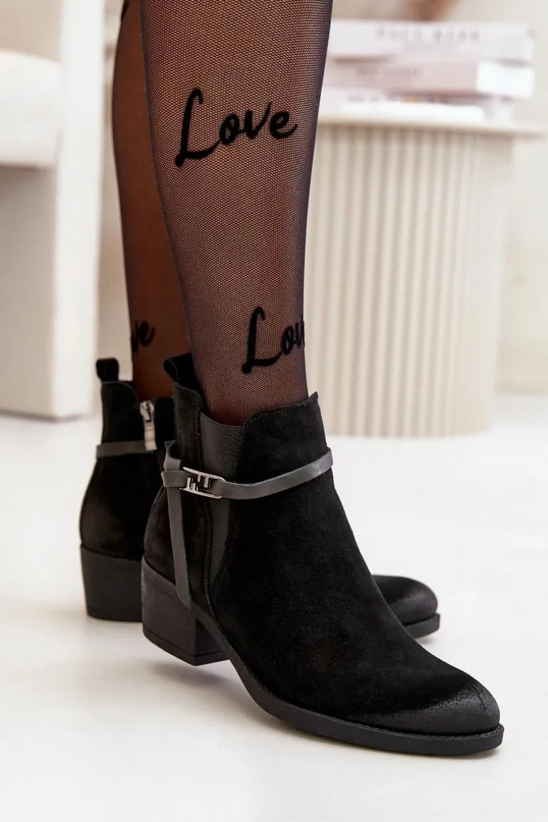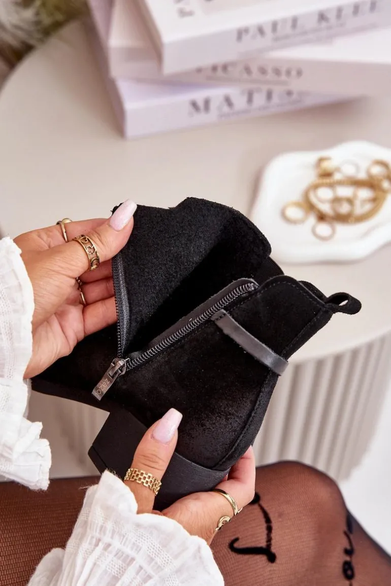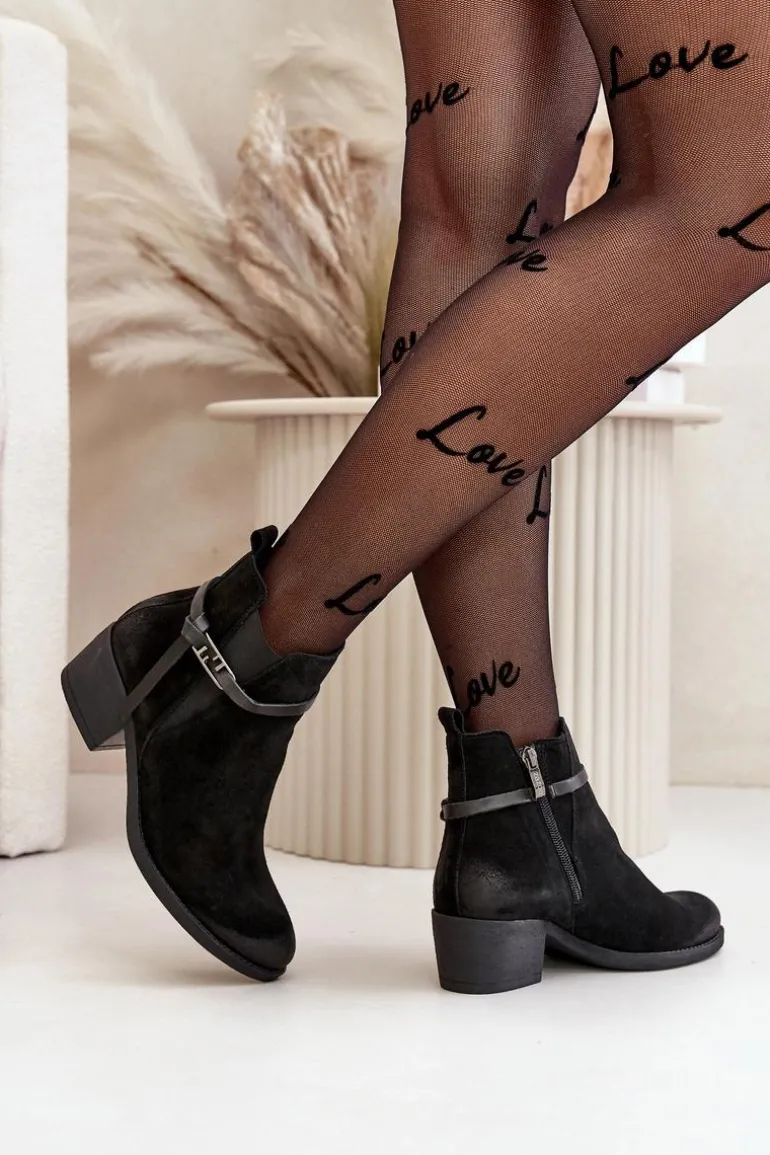 Botki z naturalnego zamszu to elegancki wybór na chłodniejsze dni. Zapięcie na zamek ułatwia ich zakładanie, a ocieplone filcem wnętrze zapewnia komfort i ciepło. Noski w kształcie migdała dodają subtelnego charakteru, a cienki ozdobny paseczek wokół cholewki stanowi stylowy akcent, który dopełnia całość. Przy wyborze rozmiaru prosimy kierować się tabelą rozmiarów