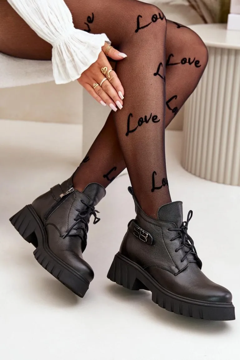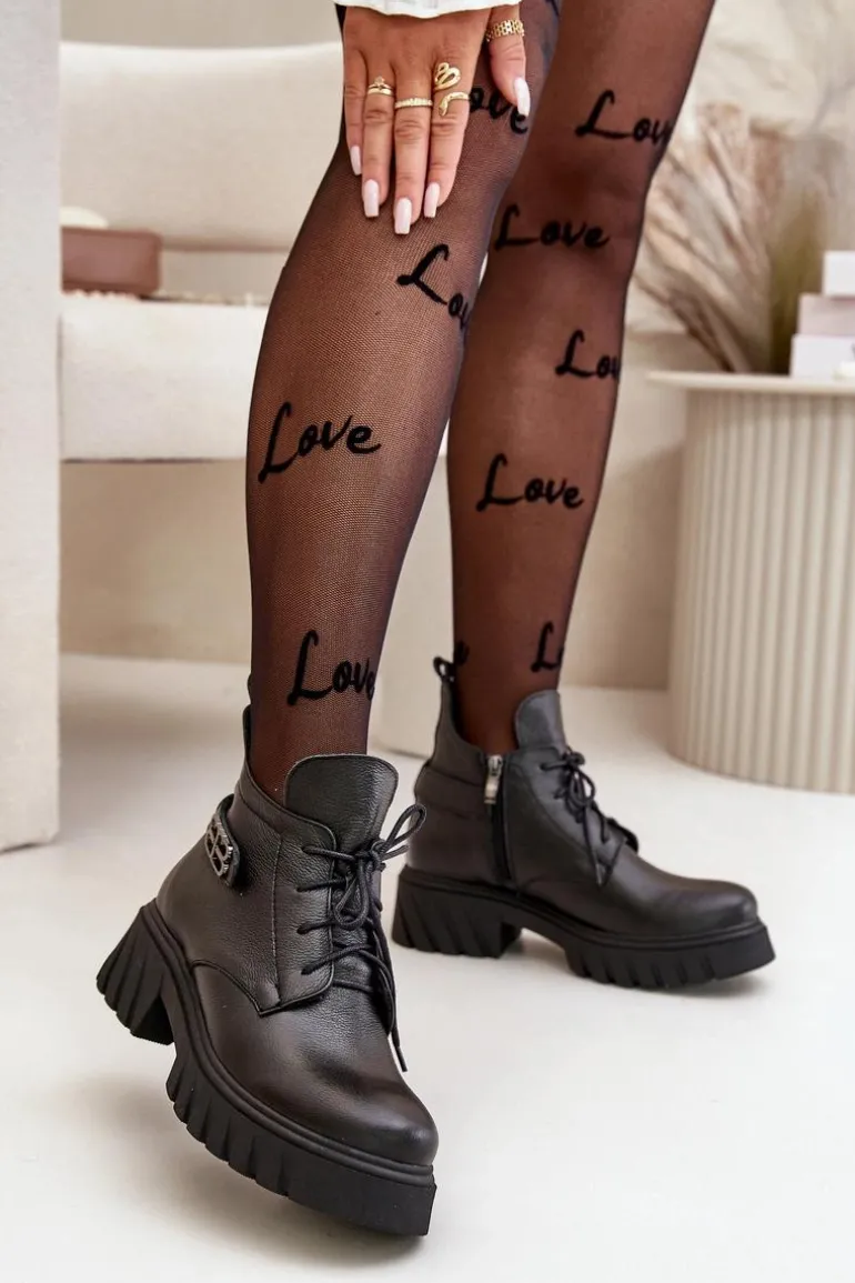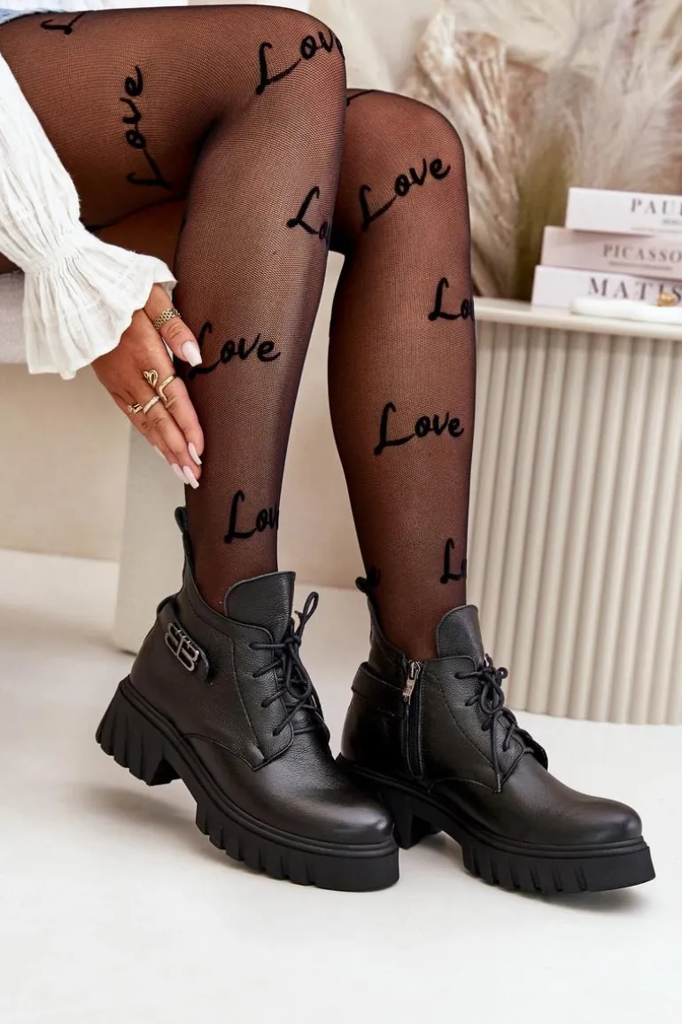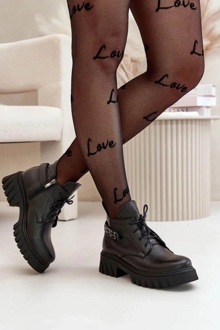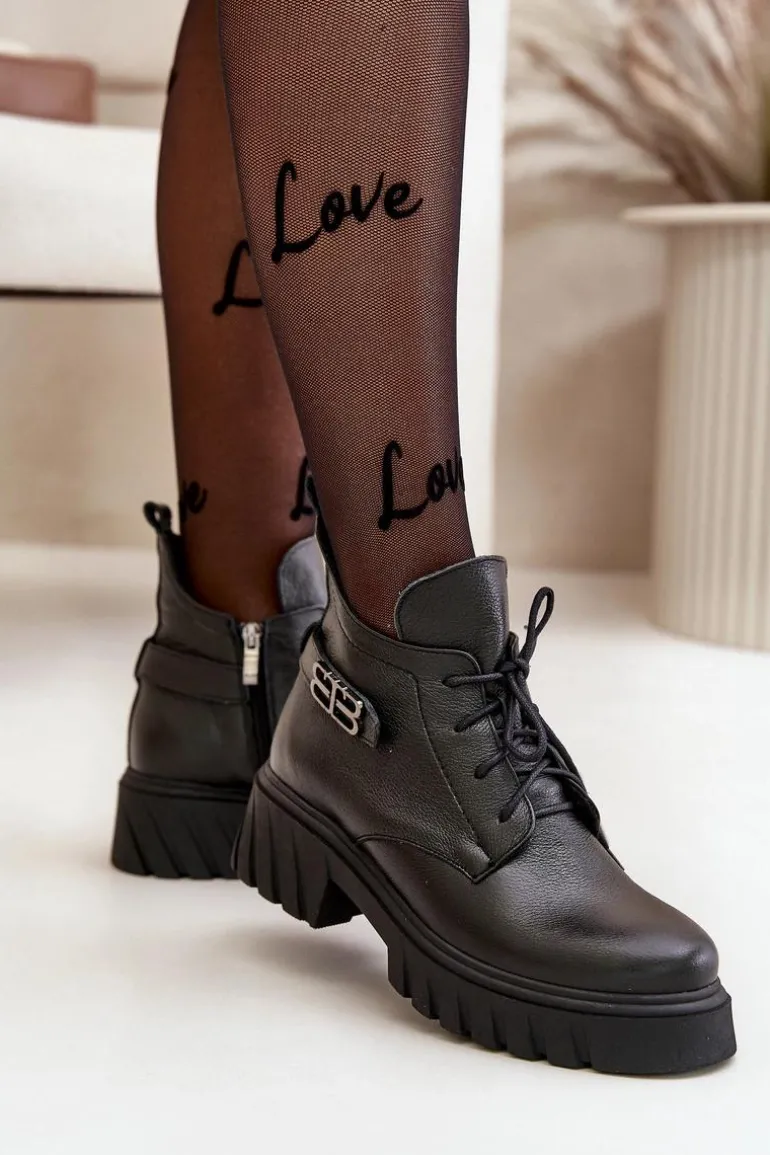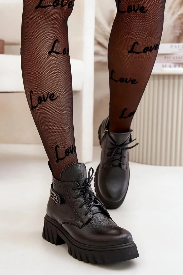 Damskie botki wykonane ze skóry naturalnej. Zapinane na zamek oraz dodatkowo posiadają sznurowanie. Noski zaokrąglone. Wnętrze zostało ocieplone miękkim filcem, który zapewnia ciepło nawet w najchłodniejsze dni. Filc nie tylko chroni przed zimnem, ale także zwiększa komfort noszenia, dzięki swojej miękkości i właściwościom izolacyjnym. To sprawia, że botki są idealnym wyborem na jesienne i zimowe miesiące, gwarantując nie tylko stylowy wygląd, ale także komfort i ochronę przed chłodem. Te botki to doskonałe połączenie klasycznego stylu i nowoczesnych rozwiązań, które sprawdzą się w różnorodnych stylizacjach, od casualowych po bardziej eleganckie. Przy wyborze rozmiaru prosimy sugerować się tabelą rozmiarów.